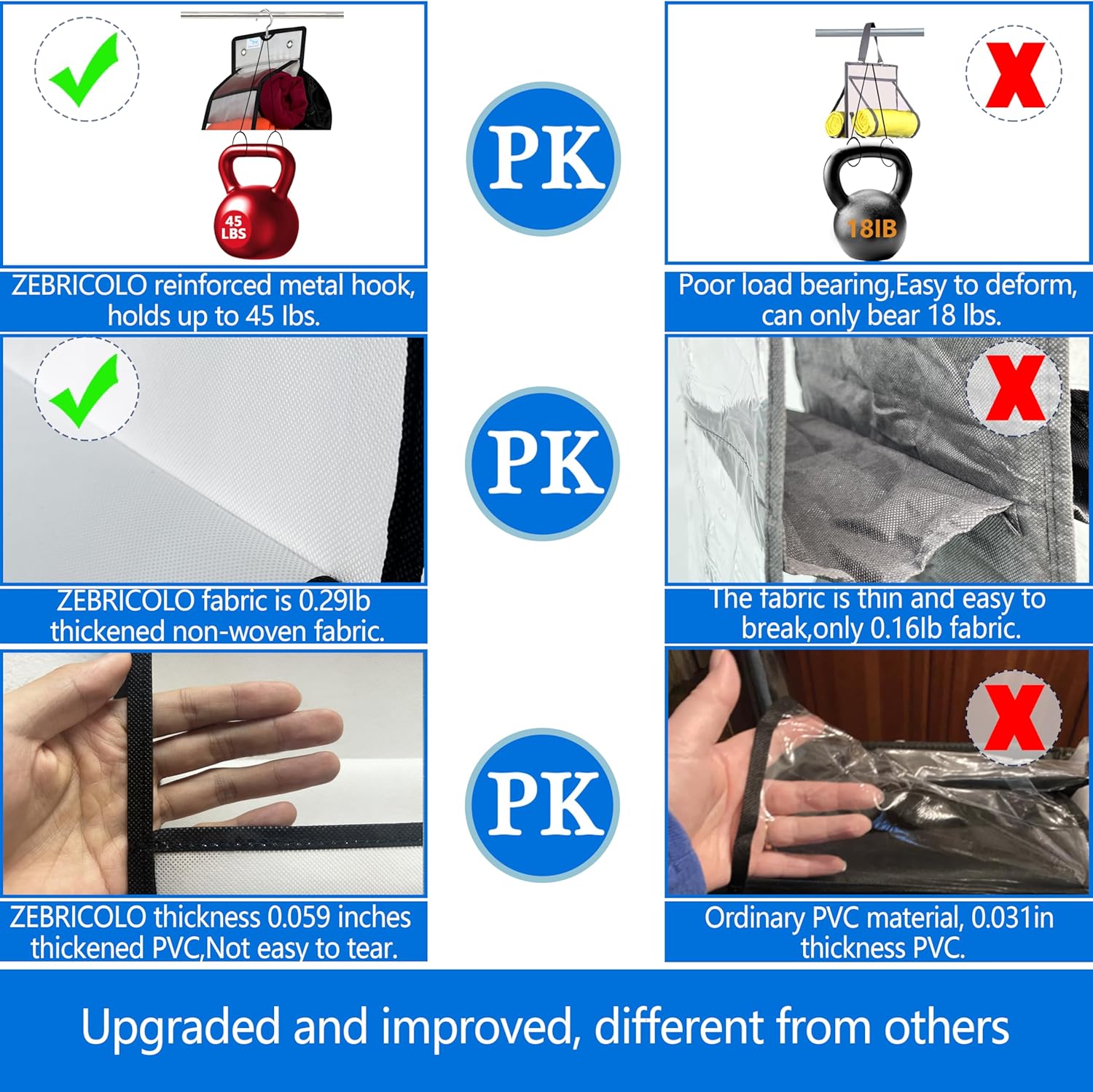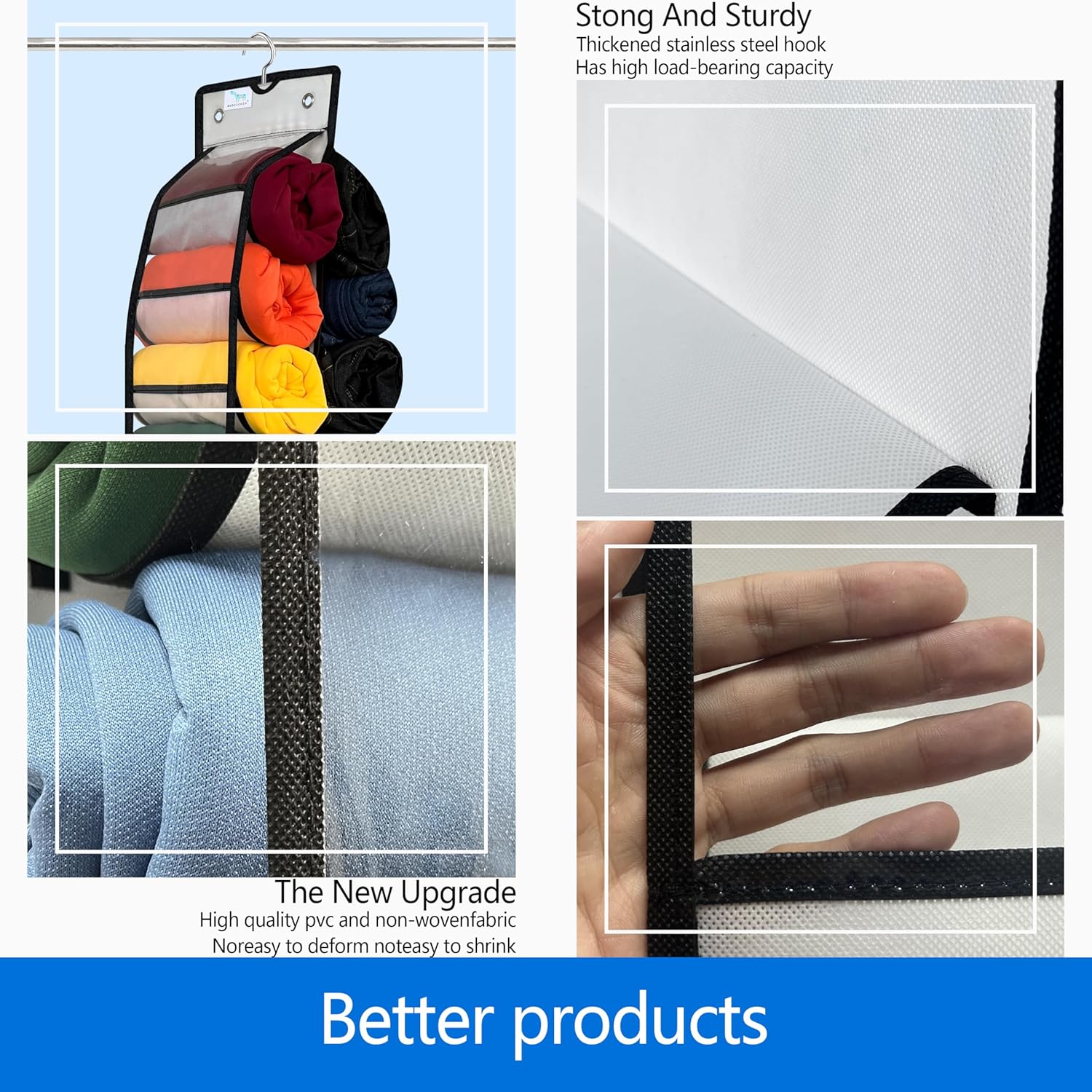 - closet organizers and storage,The thicken metal hooks ensure durability and stability when hanging, providing reliable support for your belongings.legging organizer,closet organizer,Each individual pocket is very roomy. closet organizers and storage、The clear plastic makes it easy to see what’s stored inside. The hanger is sturdy and holds the weight(40lb)Very strong load-bearing,The pockets are giant.