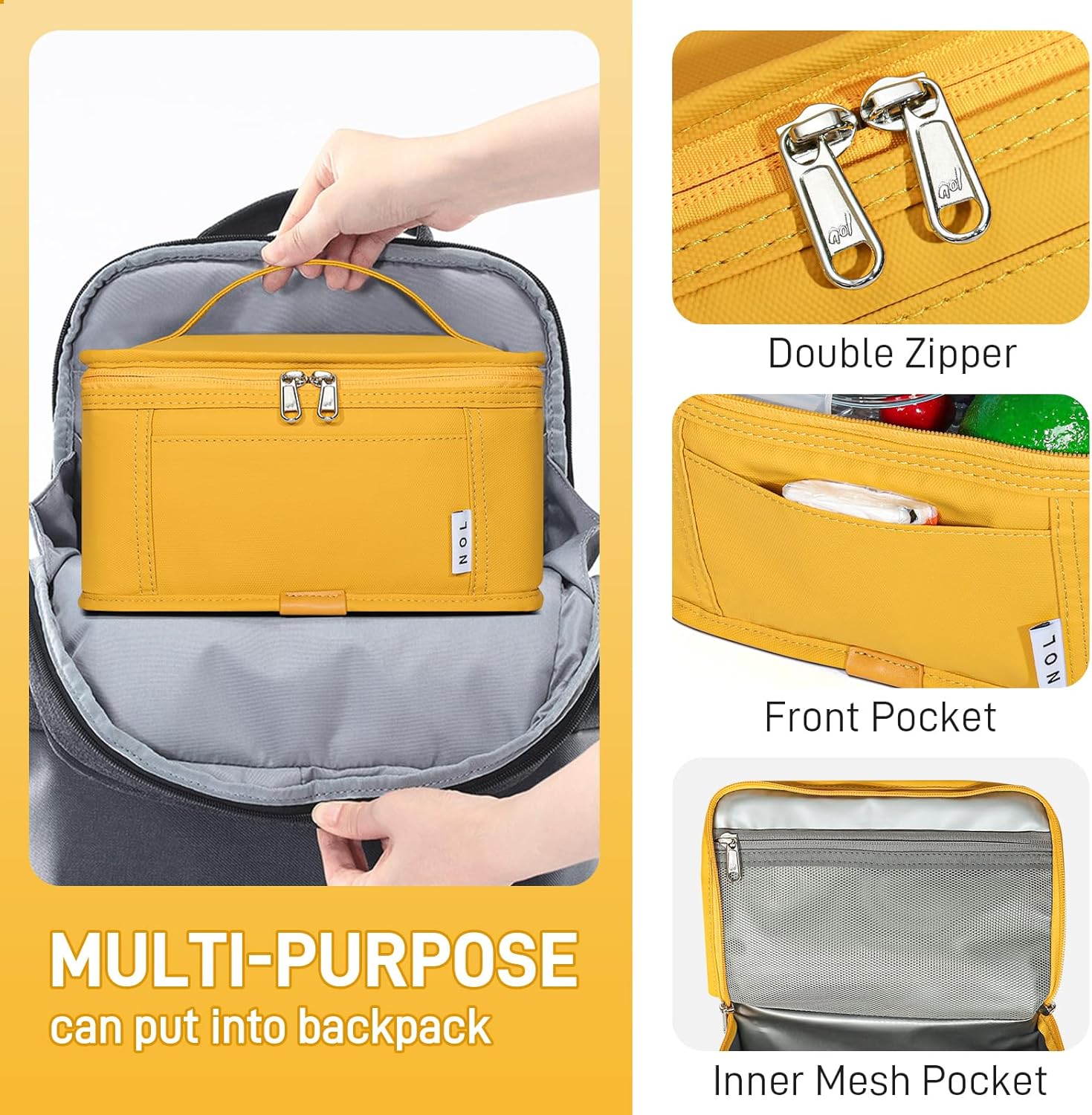 NOL Natural Organic Lifestyle Small Lunch Bag Mini Lunch Box Insulated Lunch Bag for Men/Women Leakproof Cooler Tote Bag Lightweight Nylon Waterproof Lunch Box For Work, Earth-yellow