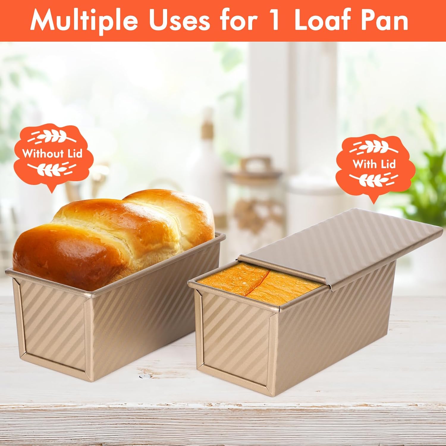 - Different Uses for 1 Loaf Pan --- Whether you want to make square bread or toast bread, Beasea loaf pan with cover can handle it easily. Flexible use of the lid according to your needs. The kind design can help get two uses of 1 bread pan, which makes beautiful loaf bread and slices of sandwich bread.