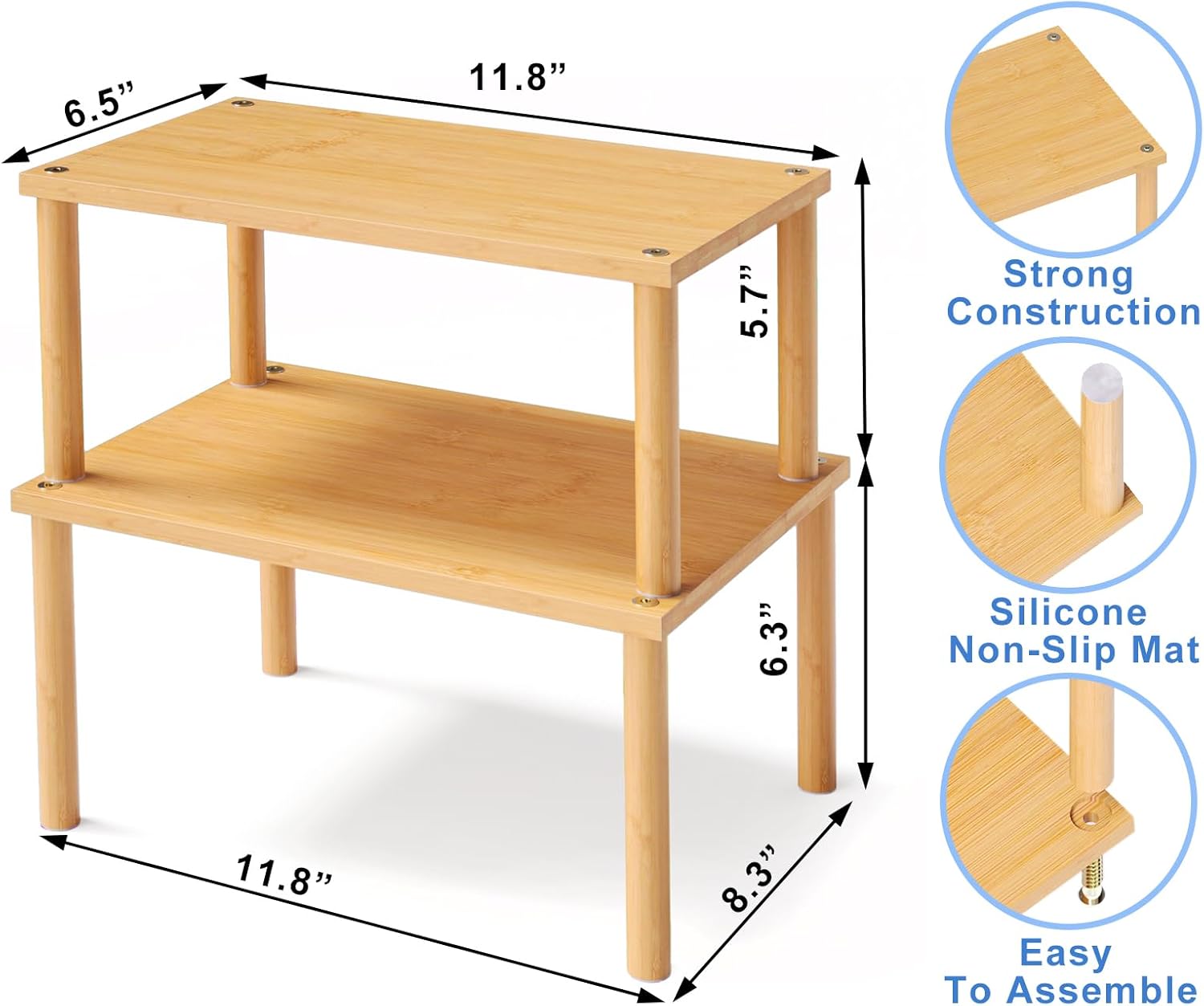Cabinet Organizer Shelf(Set of 2),Kitchen Counter Shelves,Bamboo Stackable Expandable Spice Rack Countertop(Medium)