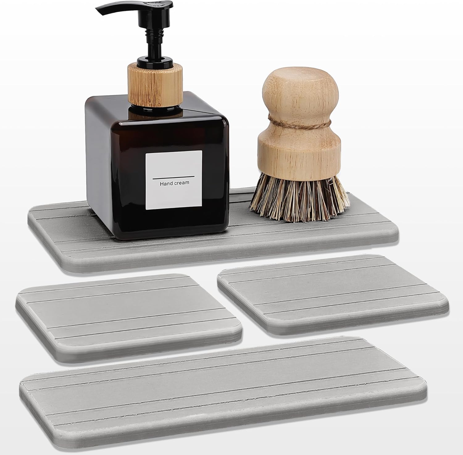 Evory Set of 4 Diatomite Soap Dishes, Kitchen & Bathroom Sponge Holders, Water Absorbing Stone Tray for Sink, Bathtub, Vanity (Light Grey)