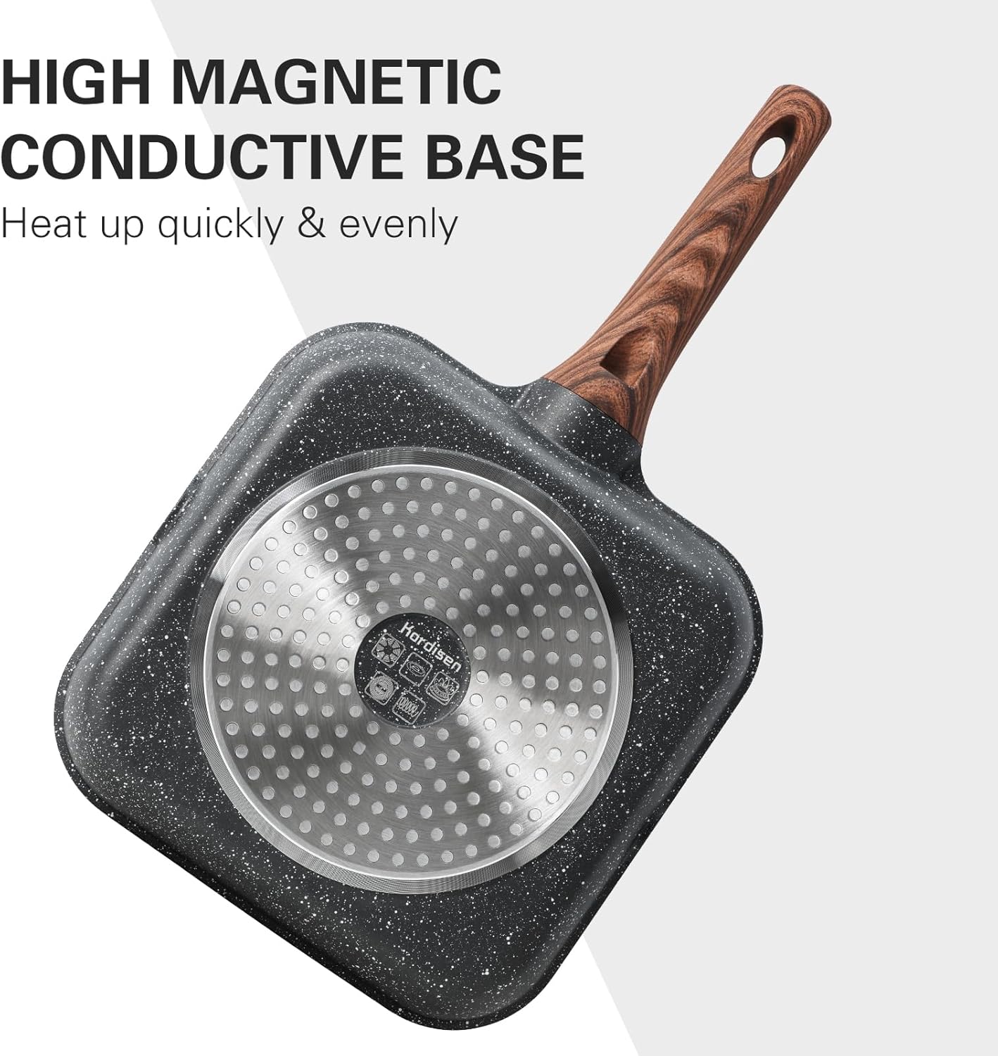 - 【Even Heating】: High magnetic conductive stainless steel base ensures even and rapid heat distribution; helps achieve consistent cooking results across the pan