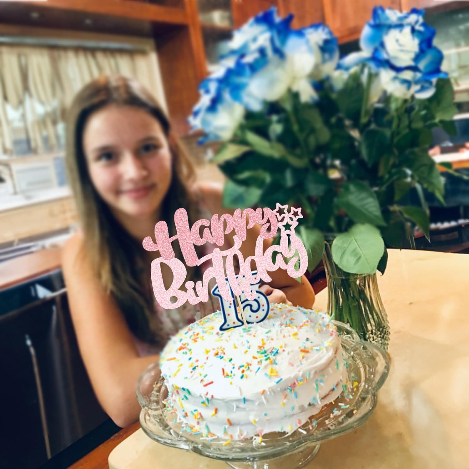 Ephlyn 1Pcs Happy Birthday Cake Topper Glitter Happy Birthday Cake Pick Decorations for Celebrating Happy Birthday Anniversary Theme Party Cake Decorations Supplies Pink Light Pink
