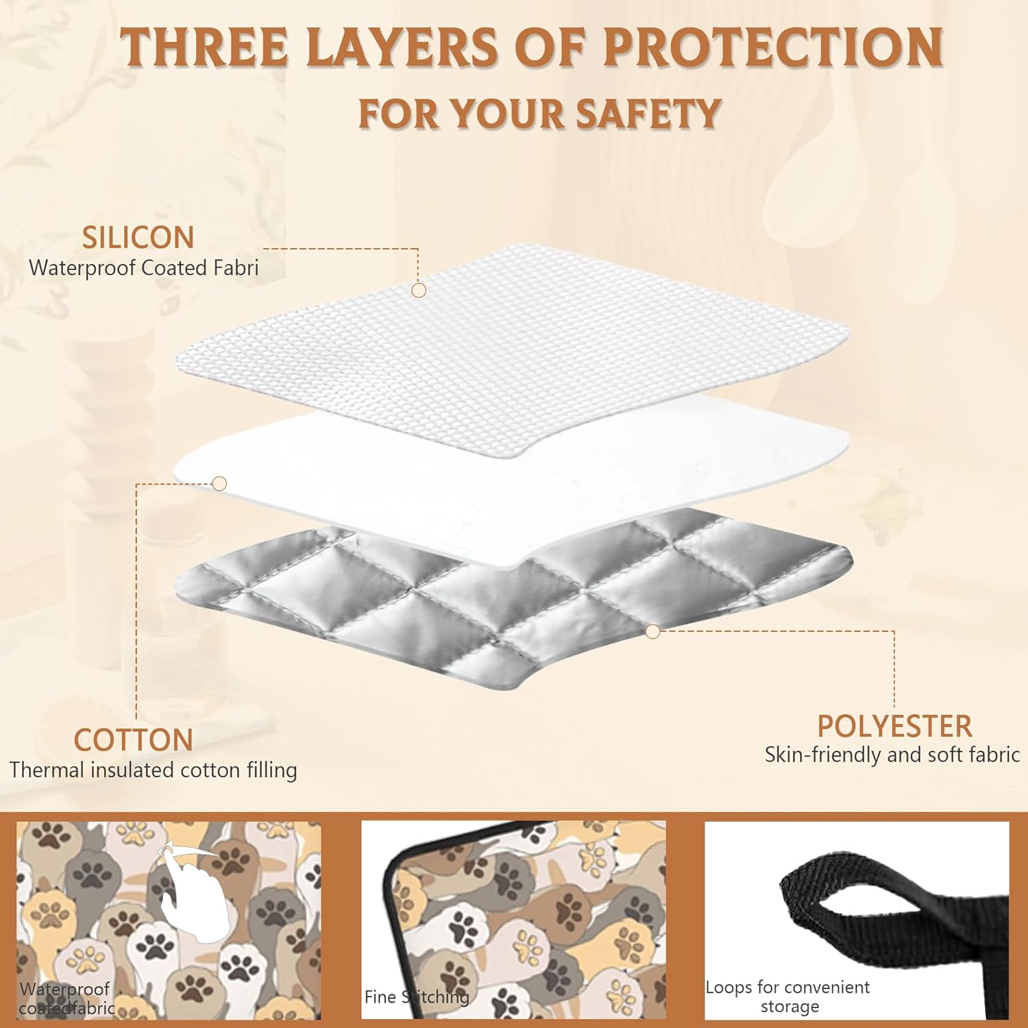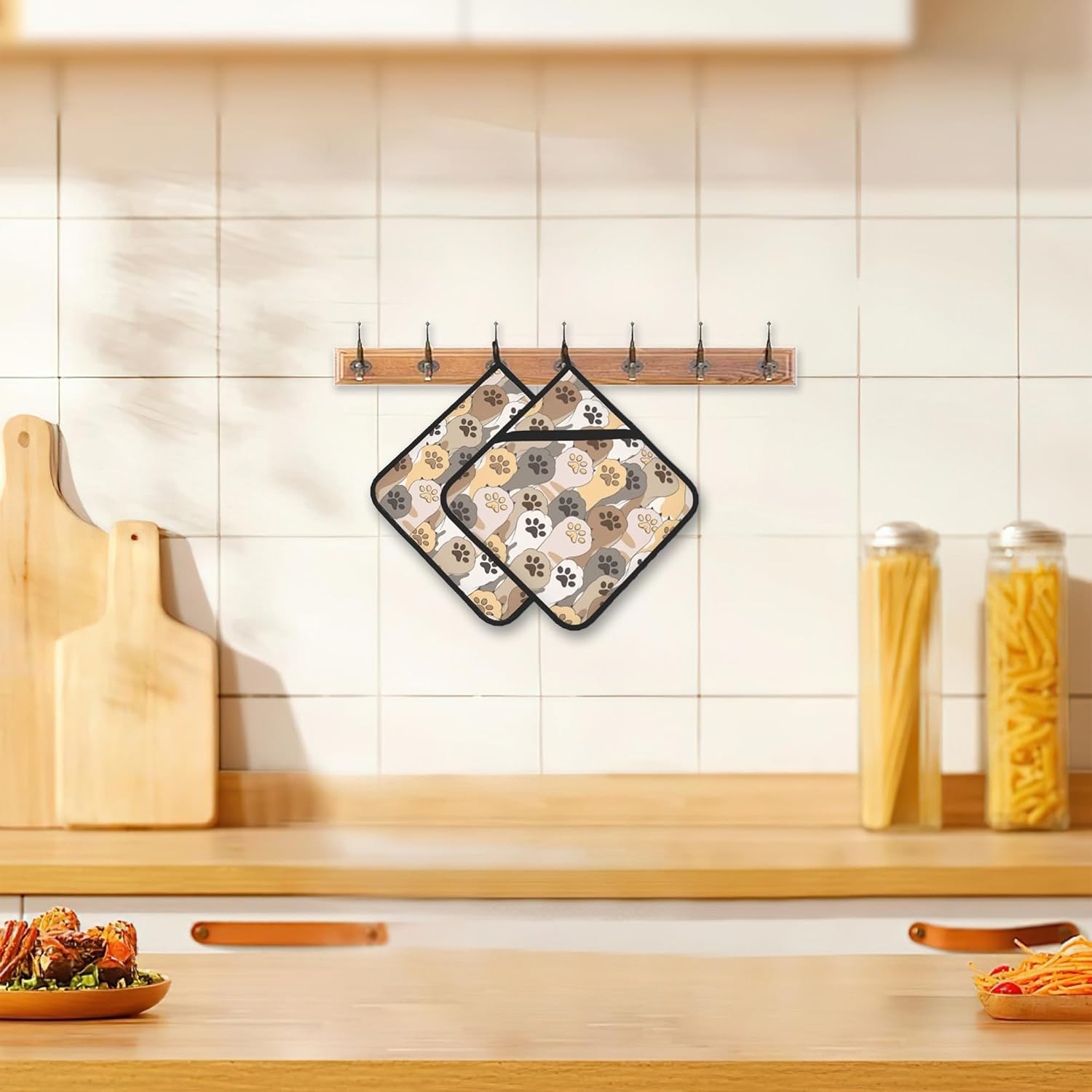 Cat Cute Paw Footprints Pot Holders Set of 2 Heat Resistant Potholders,Fire Oven Hot Pads for Kitchen Cooking Baking Barbecue