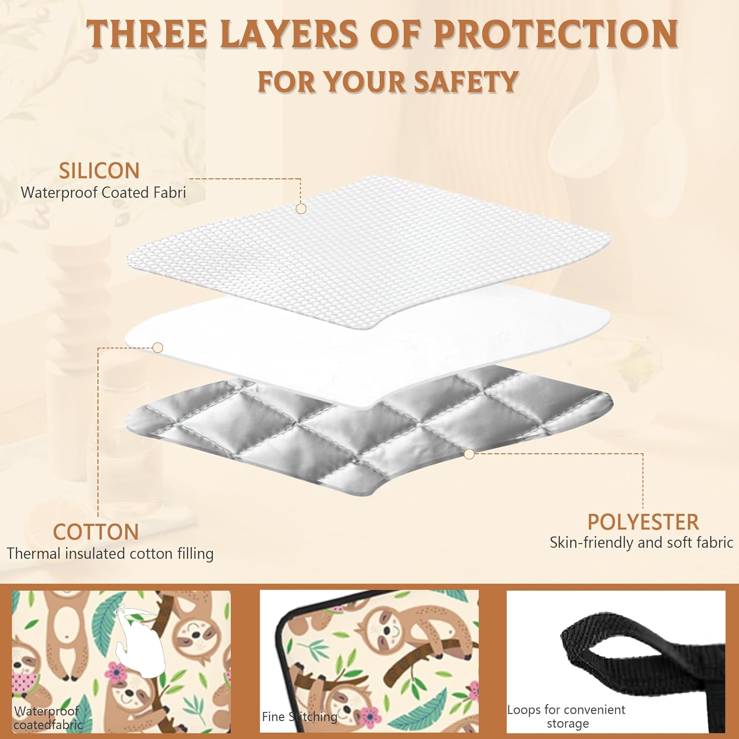 Cute Sloth Pot Holders Set of 2, Kitchen Heat Resistant Potholder for Microwave Cooking Baking Oven End Dishes and BBQ