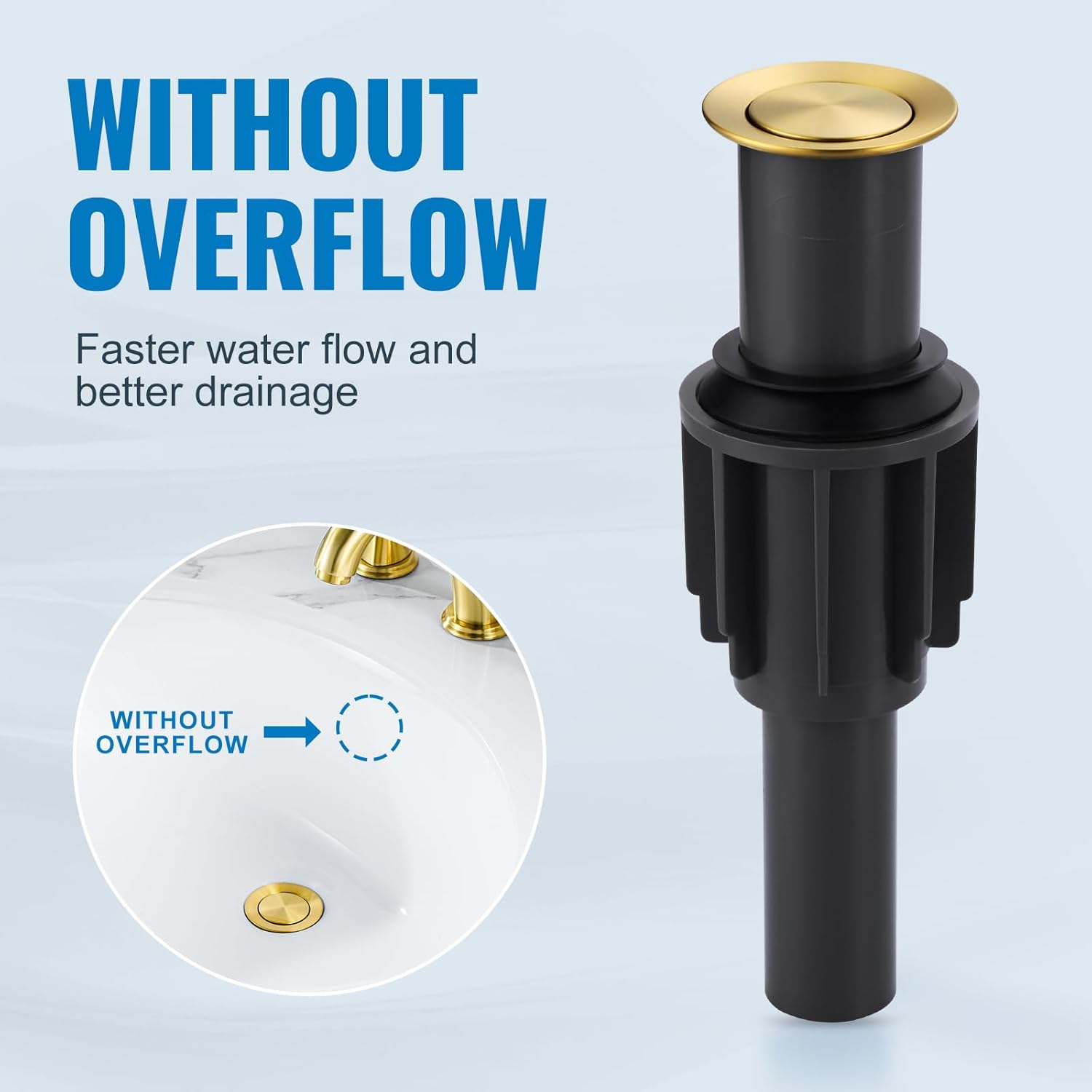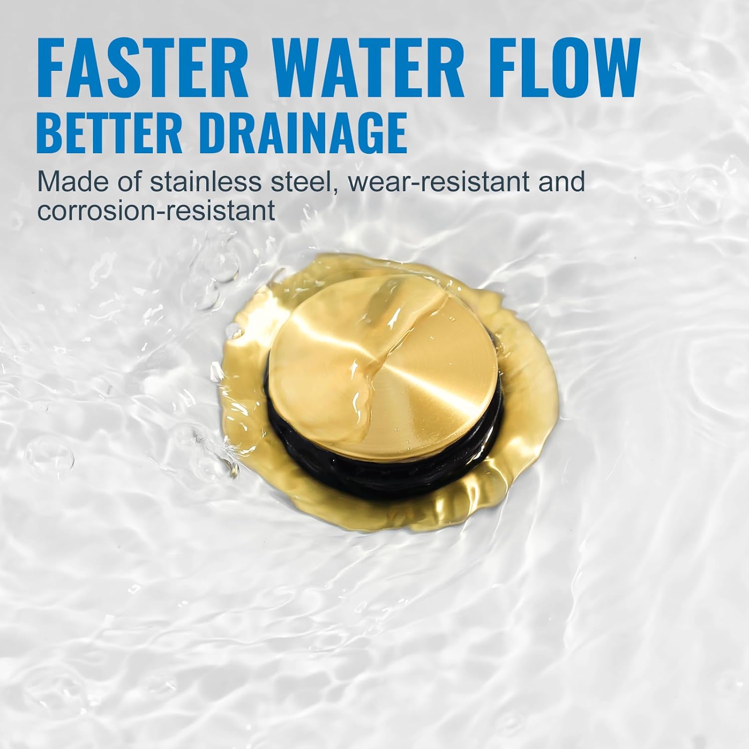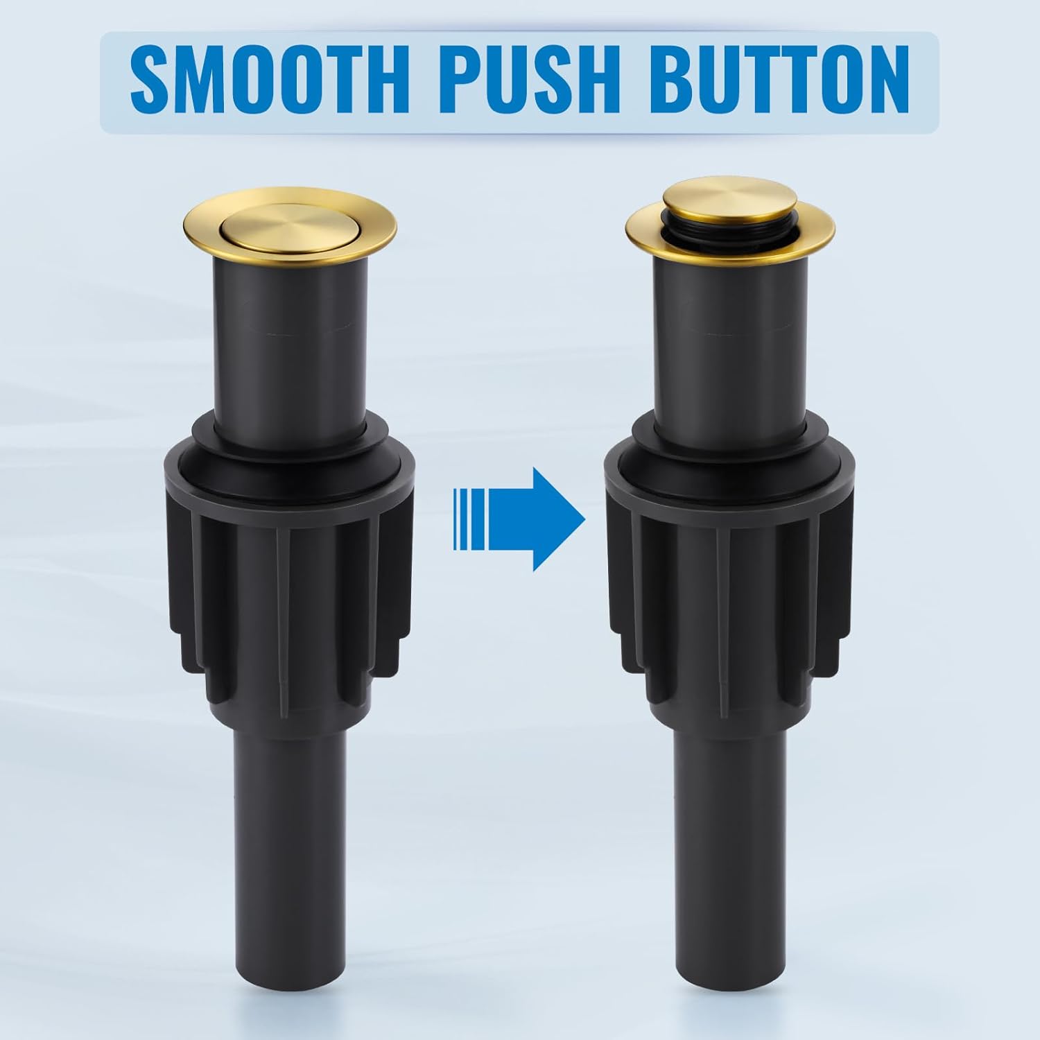 - Easy Operation - Pop up drain stopper simply push the drain down to close and to seal, push again to open and to drain water. The pop up design only needs to press lightly, and the sink drain will quickly sprinkle water.