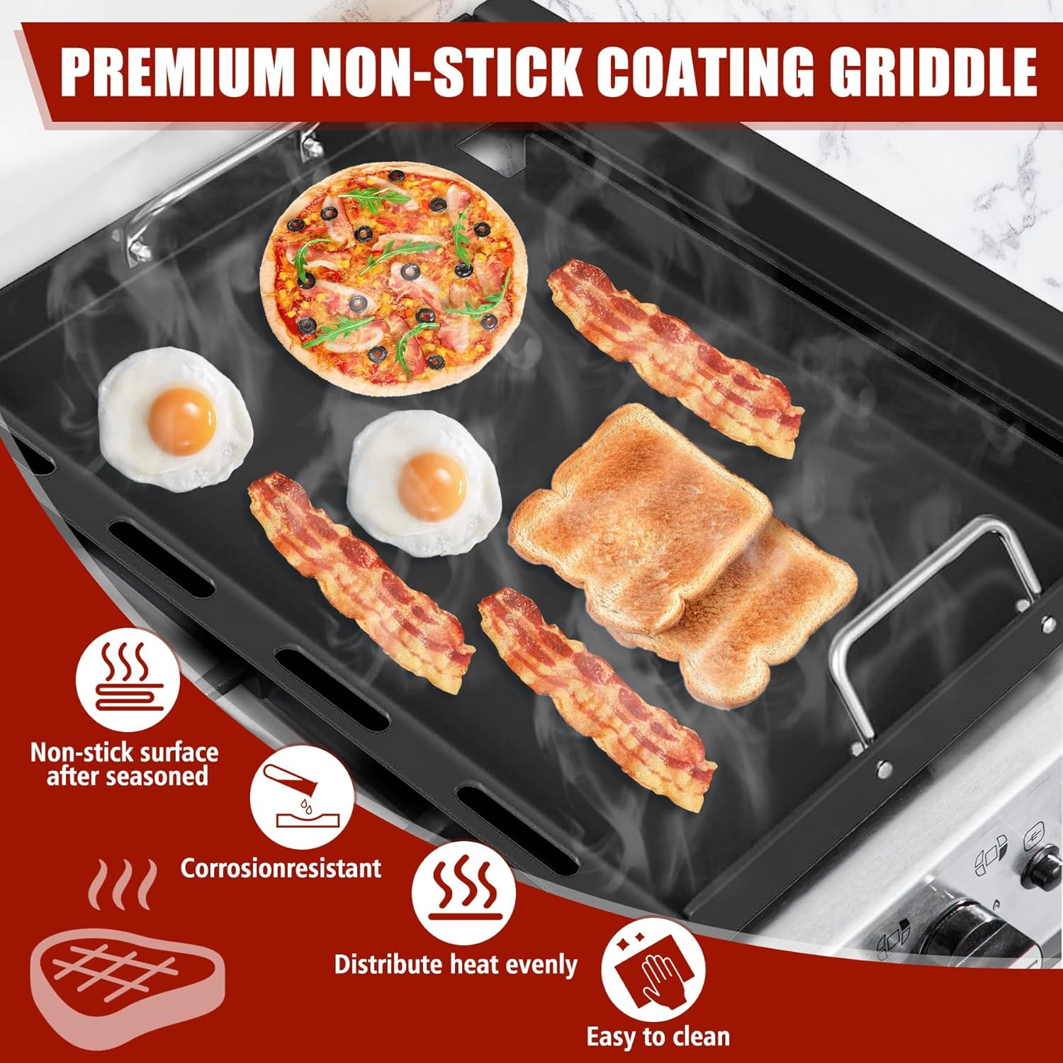 - EFFORTLESS CLEANING & USER-FRIENDLY DESIGNn: Engineered with raised edges to contain mess and a premium non-stick coating for smooth food release. Requires minimal maintenance—simply wipe with a soft sponge or damp cloth after use. Avoid abrasive tools to preserve the surface. Combines practical functionality with quick cleanup, letting you spend less time scrubbing and more time enjoying meals.