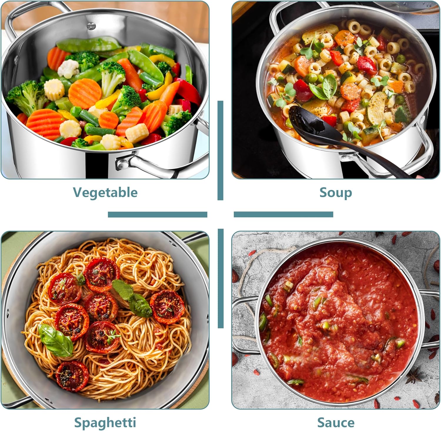 - MULTIFUNCTIONAL USE: 6QT stockpot is a perfect choice for making soups, stews, or chilis, boiling pasta, vegetables, or eggs, simmering sauces and cooking rice, Suitable for serving 4-6 people, A must-have cookware for any kitchen, Wonderful gift for Christmas, Thanksgiving, house-warming party etc