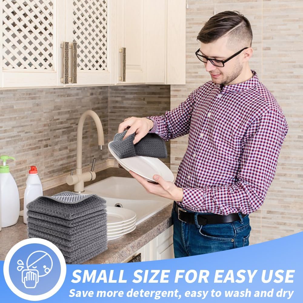 KinHwa Kitchen Washcloths for Dishes Absorbent Microfiber Dish Cloths Quick Dry Dish Rags with Poly Scour Scrub Side Ideal for Kitchen Cleaning(9, Grey, 7in)