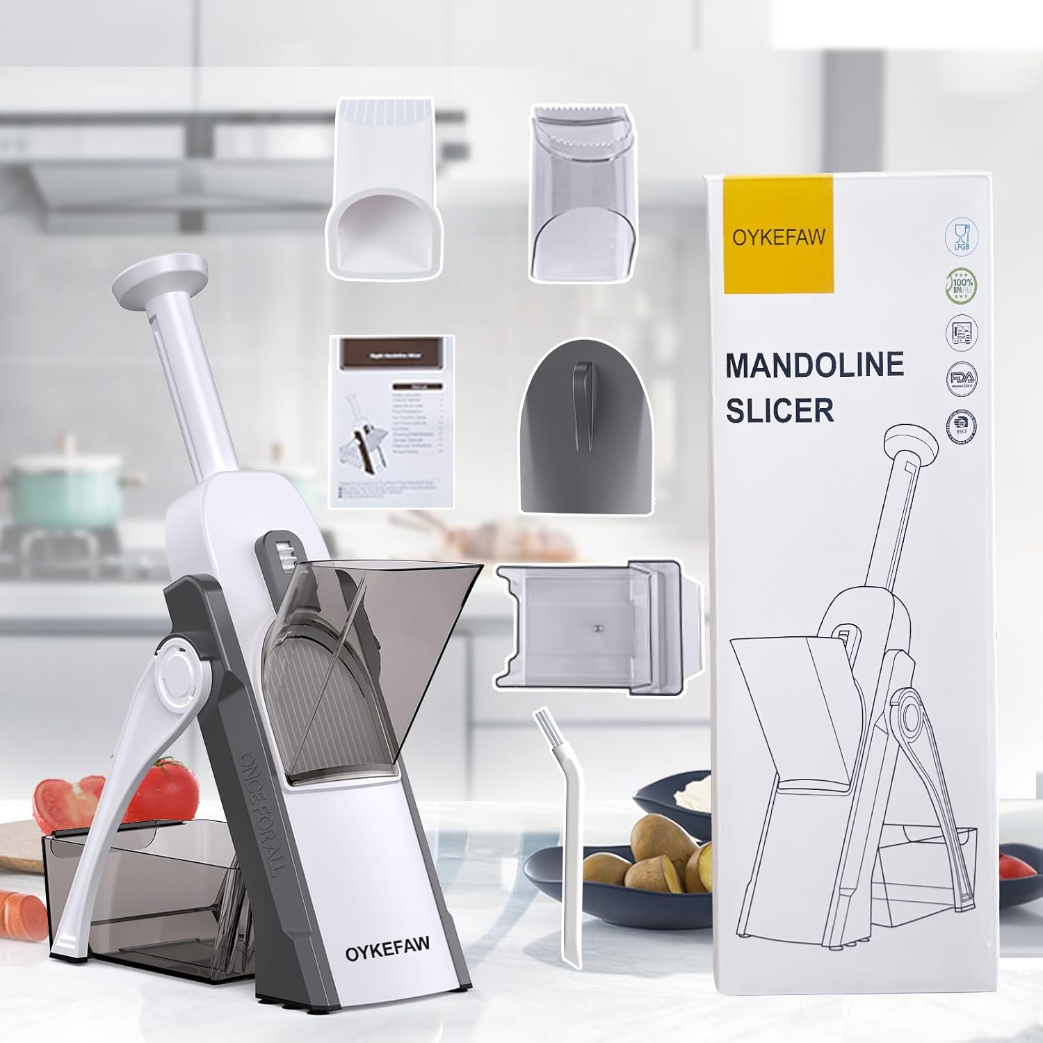 - Multi-pupose and Easy To Use:Ergonomic design and non-slip base make it stable and easy to use, it can be sliced quickly and operated with less effort, suitable for slicing potatoes, cucumber, lemon, tomato, carrots, cabbages, onions or all kinds of vegetables and fruits, which makes your kitchen work simple and efficient.