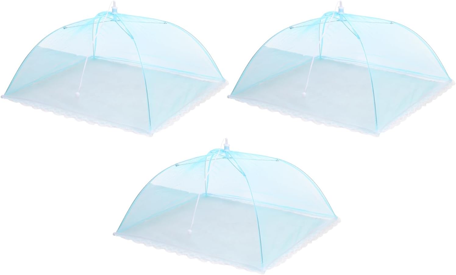 uxcell 3 Pcs Large and Tall Food Covers 17" Mesh Food Covers for Outdoors Collapsible Food Protector Covers Tent for Parties Outdoor Picnics BBQs, Blue