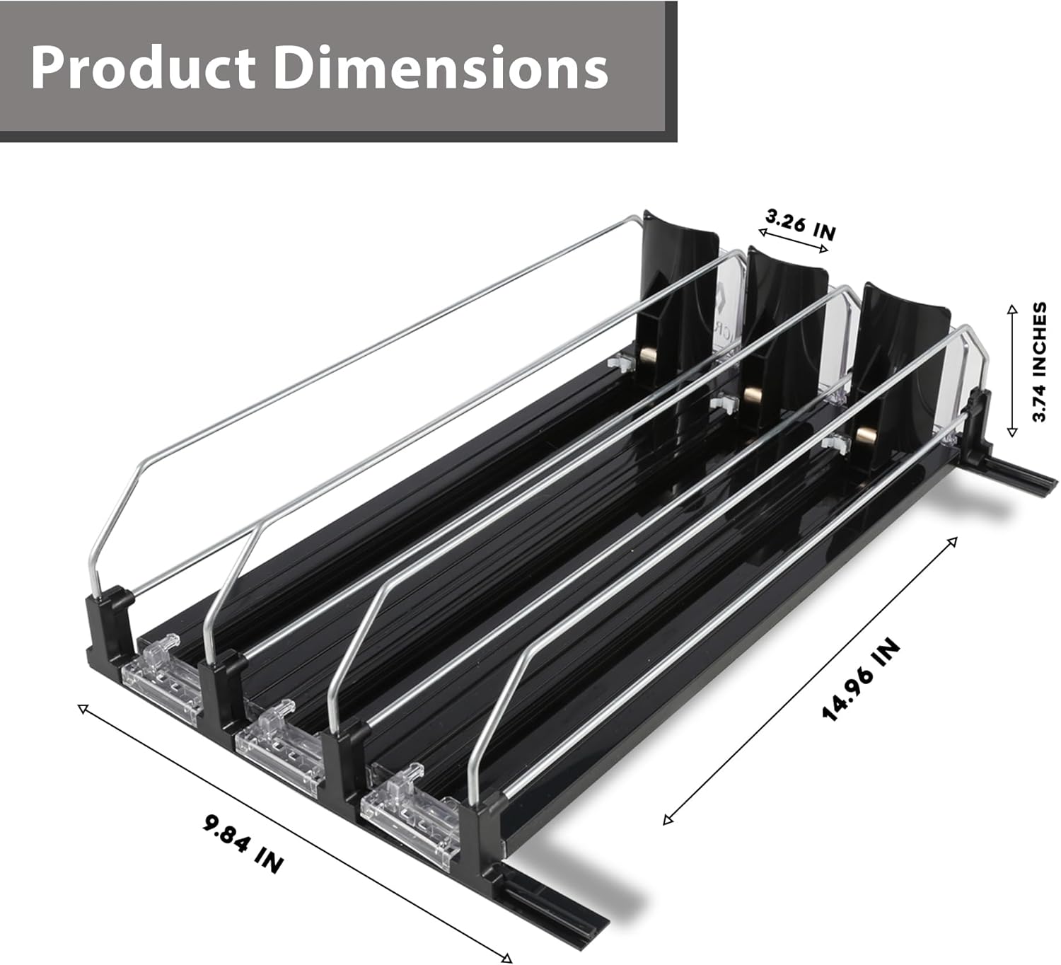 Upgraded Drink Organizer for Fridge – Adjustable Width Soda Can Organizer with Automatic Glide, Space-Saving Refrigerator Can Dispenser Holds Up to 25 Cans – Drink Holder for Fridge (3 Rows, Black)