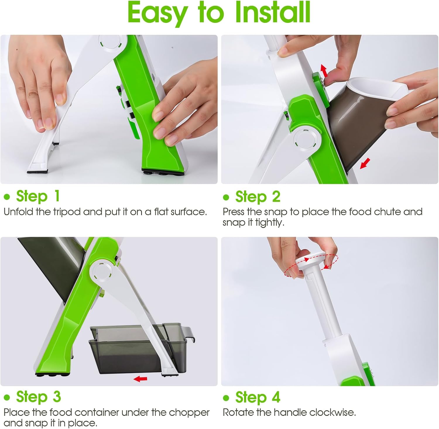 Masthome 5 in 1 Vegetable Chopper, Safe Mandoline Slicer,Professional Vegetable Slicer, Julienne&Dicer for Vegetables,Potato Slicer,Thickness Adjustable 0.1-8 mm Artifact Fast Meal Prep(Green)