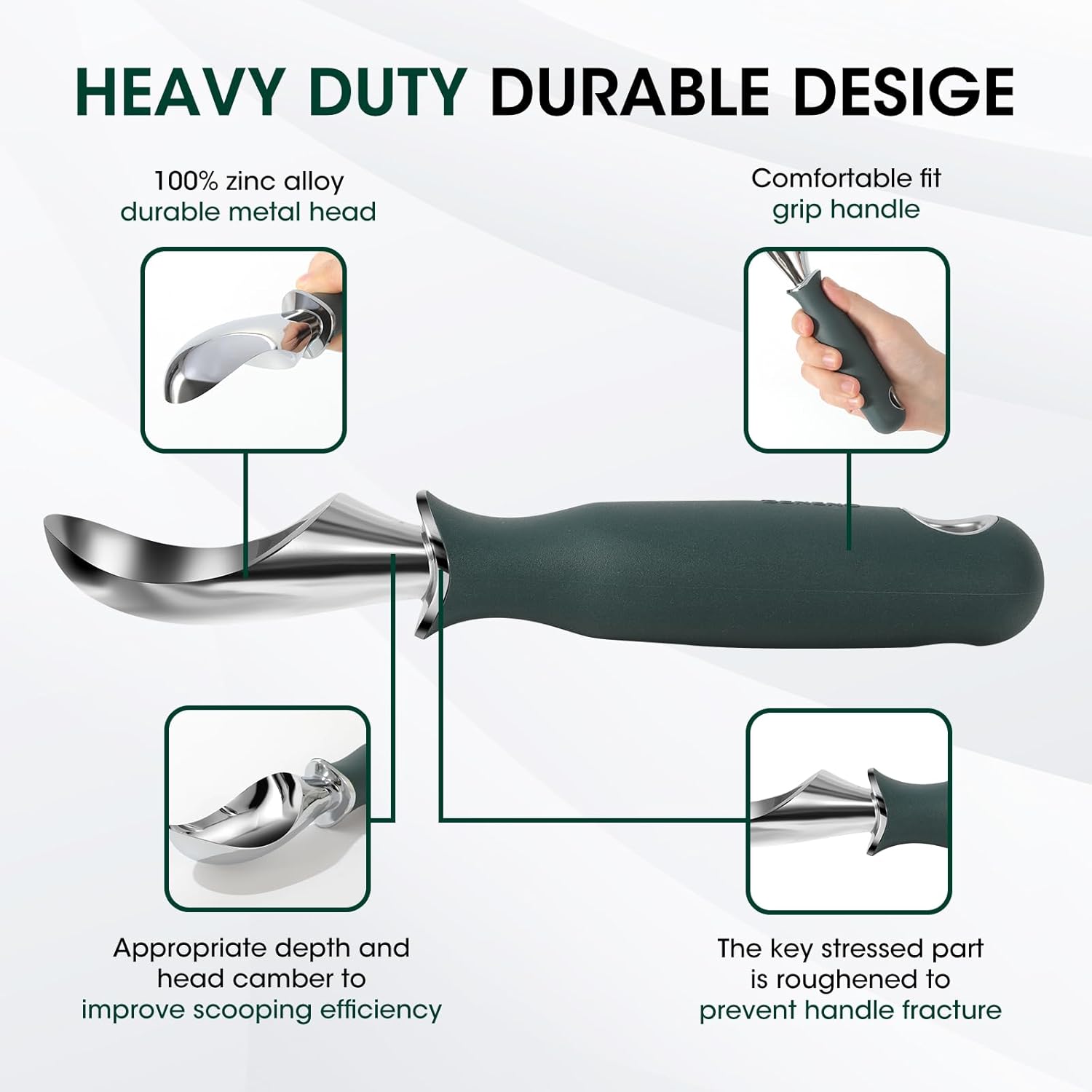 Beneno Heavy Duty Ice Cream Scoop - Upgraded Anti-Fracture Design, Comfortable Grip Long Handle, Effortless Scooping & Dishwasher Safe, Green