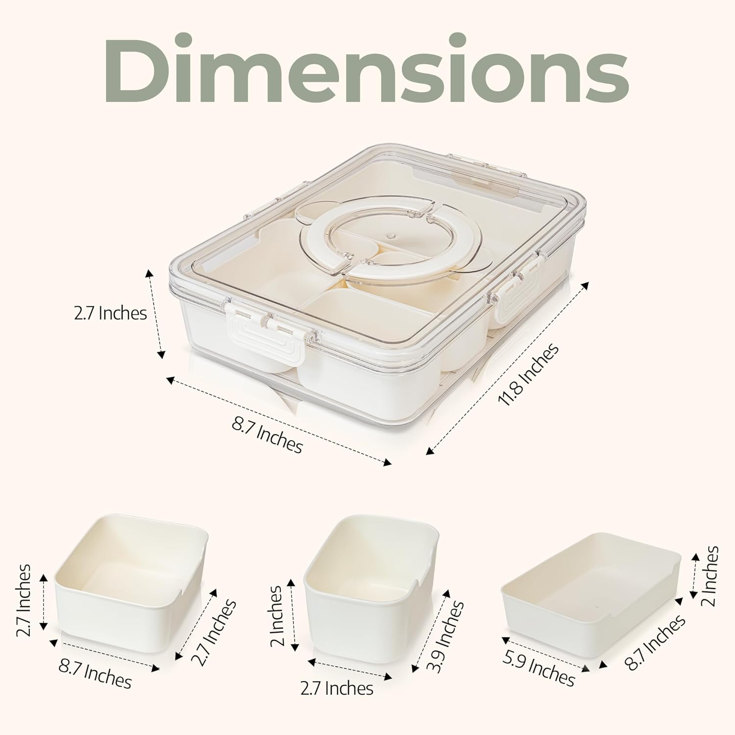 Mason & Meadow Small Snackle Box Container - Travel Snack Box Container - Snacklebox - Divided Serving Tray With Lid and Handle - Portable Snack Tray With Lid - Snackle Boxes (4 Compartments - Cream)