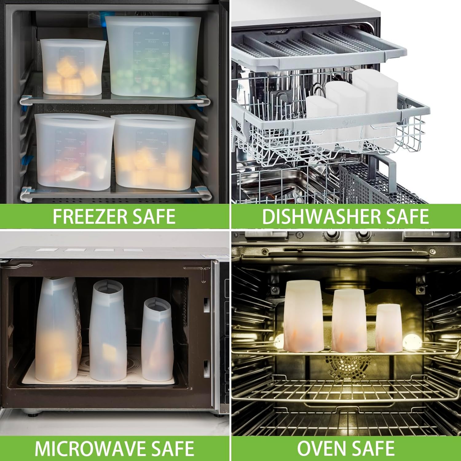 - Special Feature : 100% Silicone, Flexible, Microwave Safe, Freezer Safe, Dishwasher Safe, Oven Safe, Stand Up, Zip Lock 100% Silicone, Flexible, Microwave Safe, Freezer Safe, Dishwasher Safe, Oven Safe, Stand Up, Zip Lock