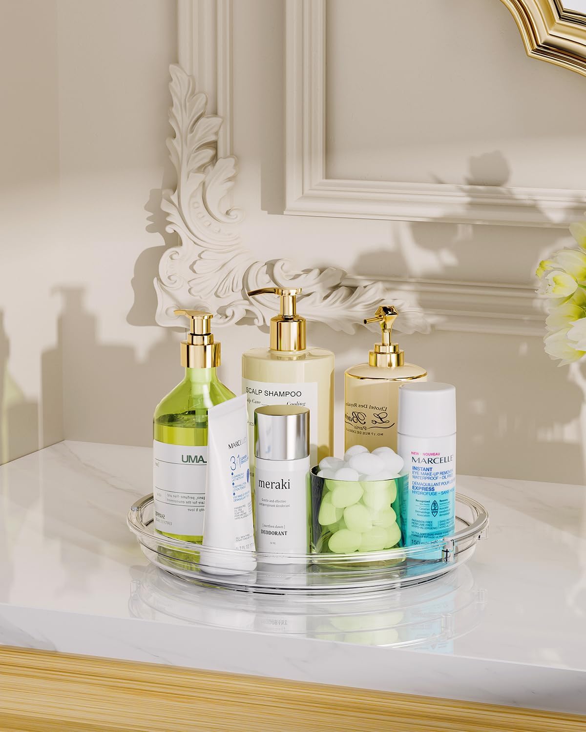 - Thoughtful Design: LAMU clear Lazy Susan pantry organizer features a specially designed 1.38'' raised edge to prevent items from falling during rotation. The clear design seamlessly blends with any decor, keeps it tidy and enhances the aesthetic appeal