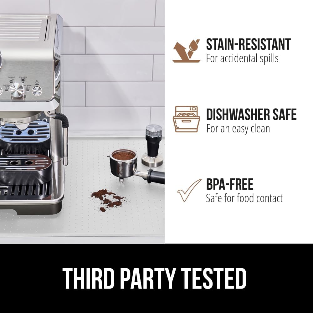 GORILLA GRIP Silicone Coffee Mat, 15x23, Espresso Drink Bar Station Accessories, Use Under Machine, Waterproof Heat Resistant Multi-Use Dish Drying Mats, Stays in Place, Kitchen Home Decor, White