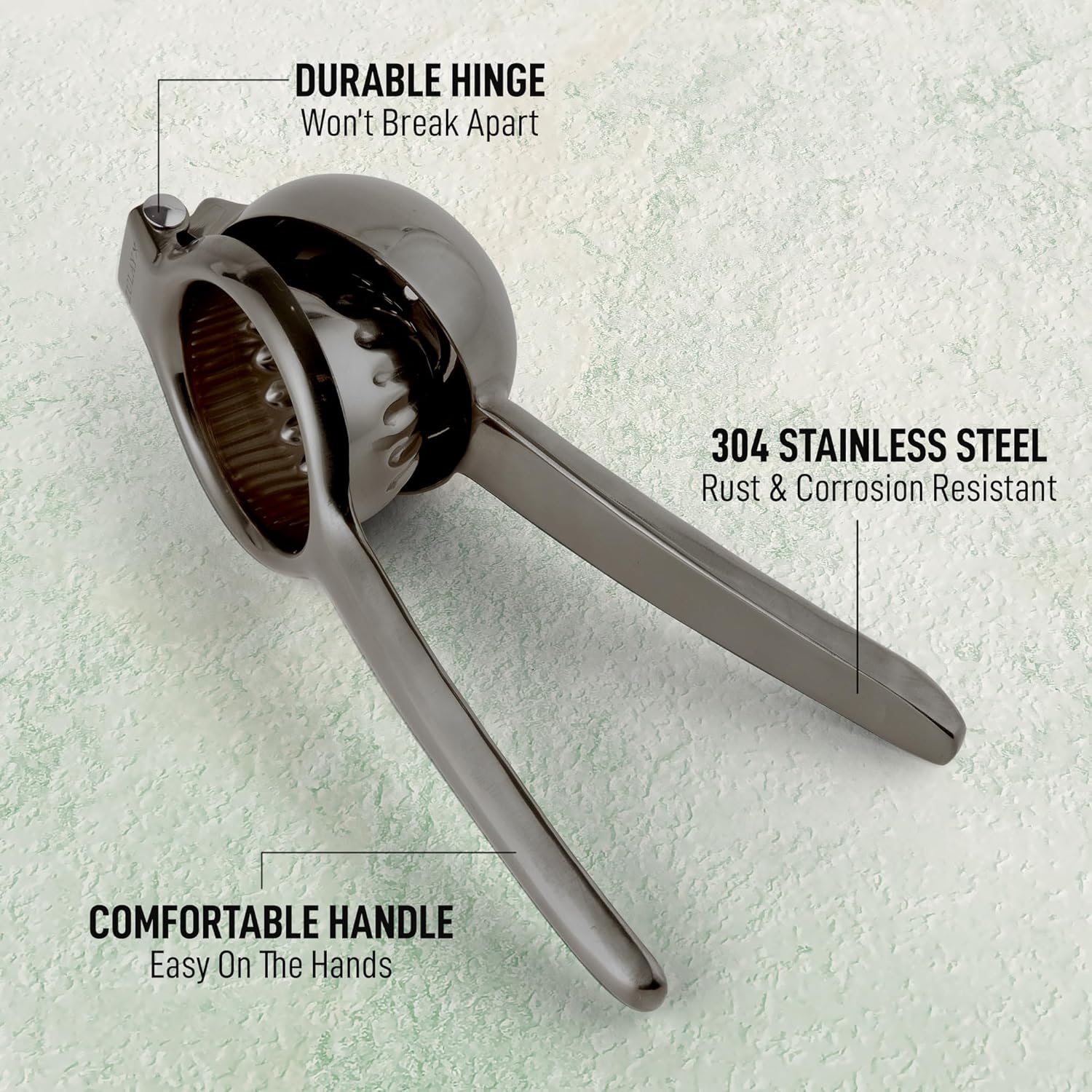 - MADE WITH HIGH QUALITY STAINLESS STEEL: This Easy-To-Use and Easy-To-Store Lemon Squeezer is built like a tank. No more bulky hard-to-clean juicers crowding the decor of your home bar or kitchen this citrus press has you covered. Whether you’re a chef or simply want a pampered squeeze you can be drinking lemonade in a just seconds.