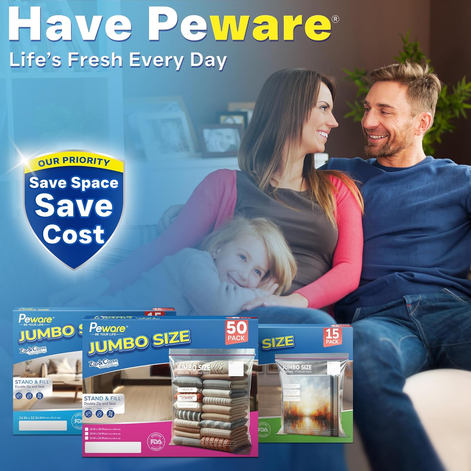 - EXTRA LARGE 24X32 INCHES SIZE: Perfect for storing bulky items like blankets, pillows, or large batches of food. With a 20-gallon capacity, these bags are the ultimate solution for heavy-duty storage needs.