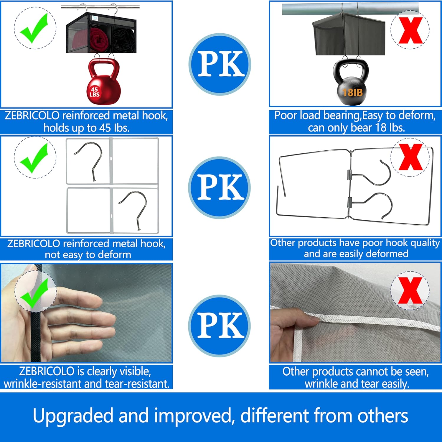 - Material thickened non-woven fabric; Thicken Metal Hooks : Mounting Type hanging closet organizer