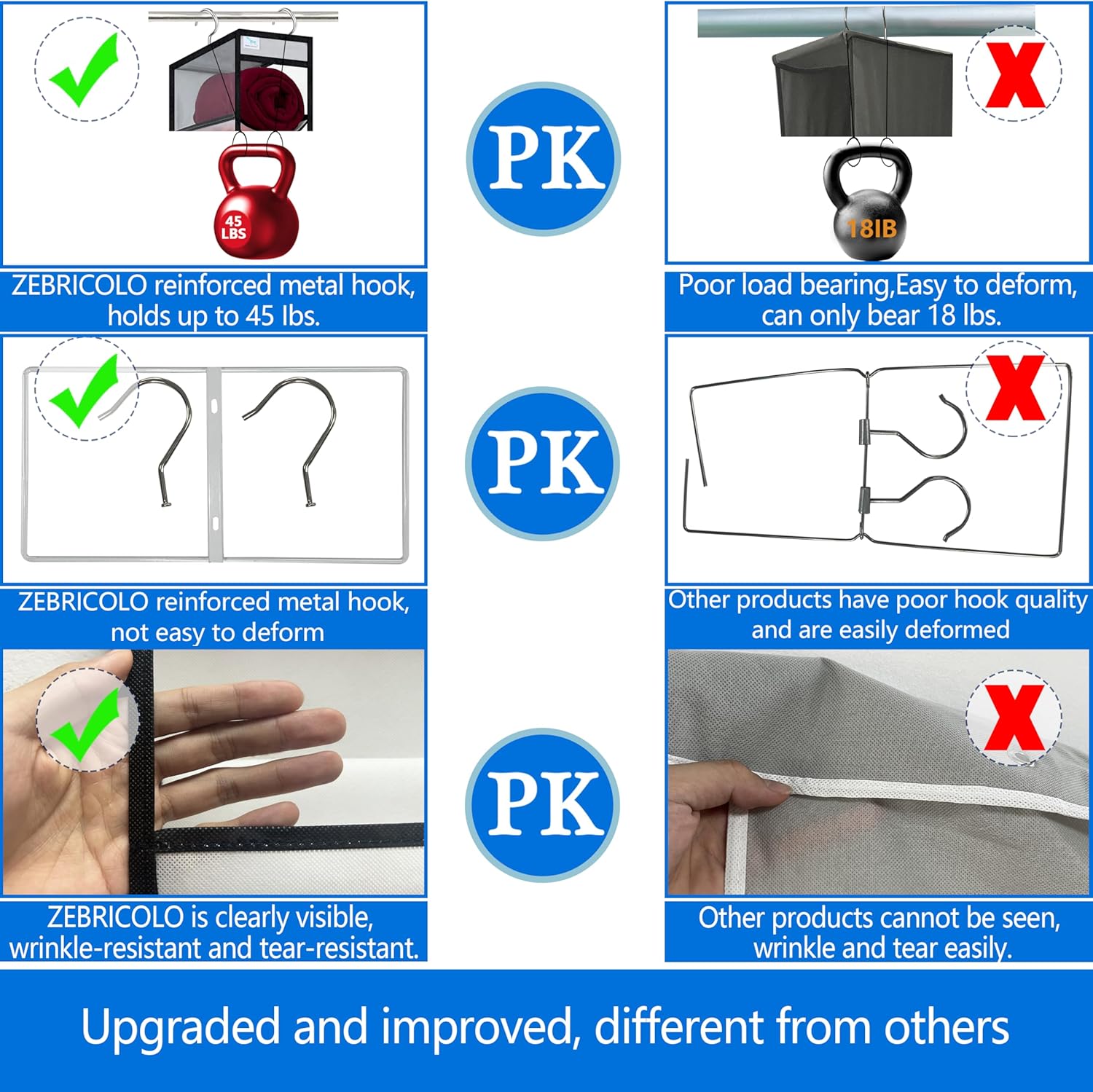 - 【Easy to Install & Sturdy and Durable】closet organizer No assembly required! The organizer comes with hooks that easily hang on any closet rod. less than five minutes to set it up.The build quality is impressive. The non-woven fabric is strong and durable, ensuring that the hanging closet organizer can hold a 45lb of weight without sagging or tearing. The reinforced seams add to its sturdiness.