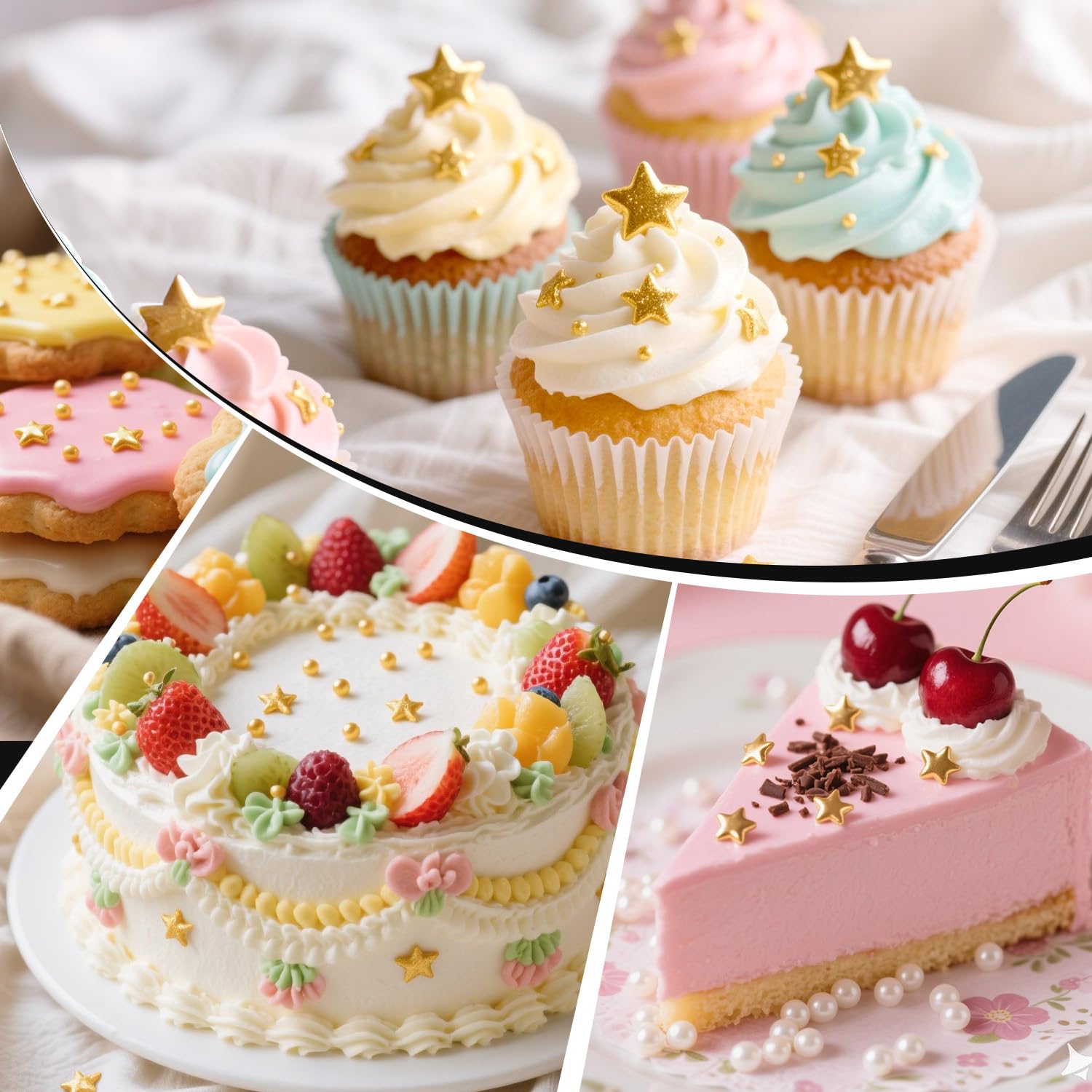 Gold Star Sprinkles for Cake Decorating, Edible Star Sugar Candy, Mix Size, Baking For Cupcakes, Decorating, Cookies, Donuts, Wedding Party, Holiday, 150g/5.29oz