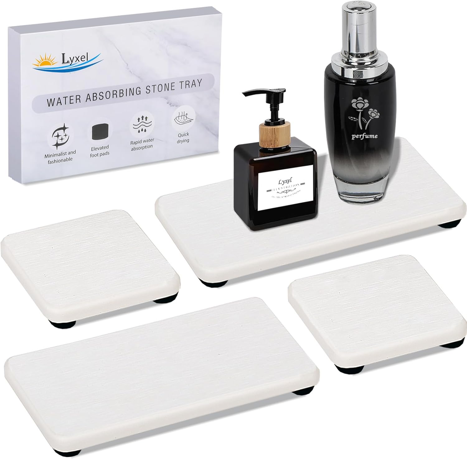 4PCS Water Absorbing Stone Tray for Sink, Fast Drying Stone Sink Tray, Water Absorbent Diatomite Trays, Diatomaceous Coaster, Stones Drying Trays for Bathroom Sinks and Kitchen Counter