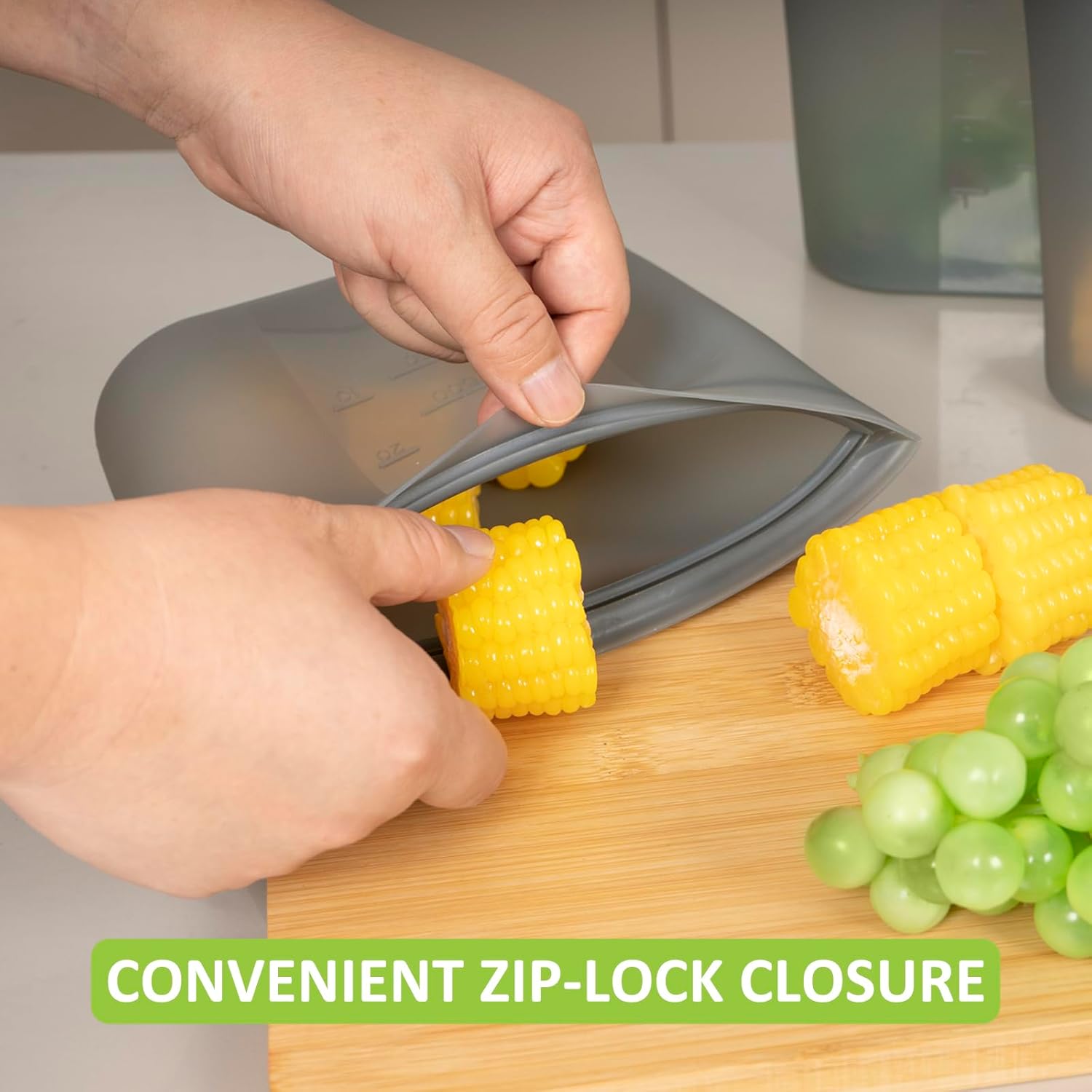 - 【100% SILICONE - SAFE & RELIABLE】Made of 100% food-grade silicone, our reusable food storage bags are PVC, lead, chlorine, phthalates, and BPA-free. Non-toxic and odorless, they offer safe food storage to your family. Designed with durability in mind, their thick material and sturdy construction ensure long-lasting use. Lightweight and convenient for everyday use, they're the ideal storage solution