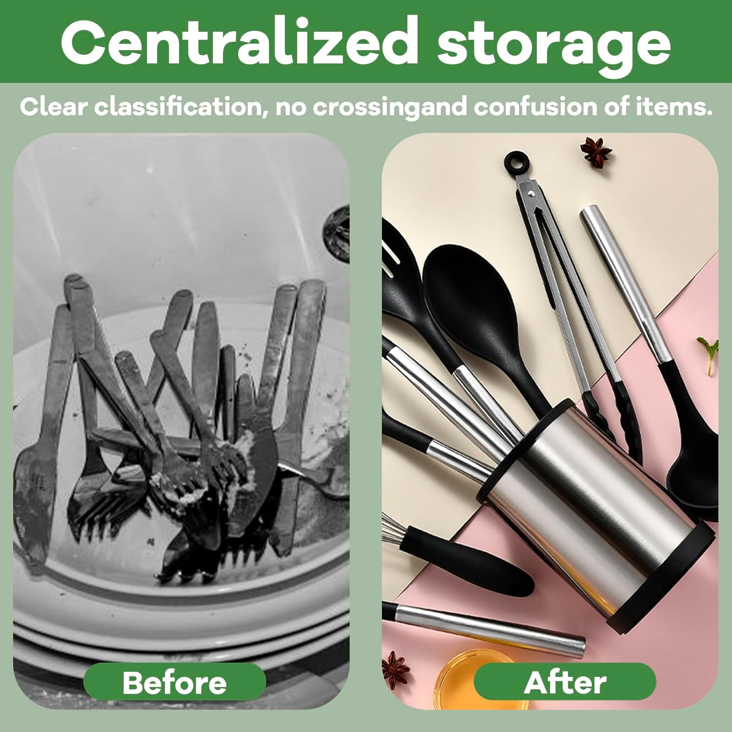 - 【360° Rotating Utensil Holder Counter】The utensil holder has an exclusively made 360°rotating base that greatly increases the smoothness of rotation. Allows you to reach the cutlery in your kitchen more easily.Non-slip swivel bottom increased contact rotation is more stable.