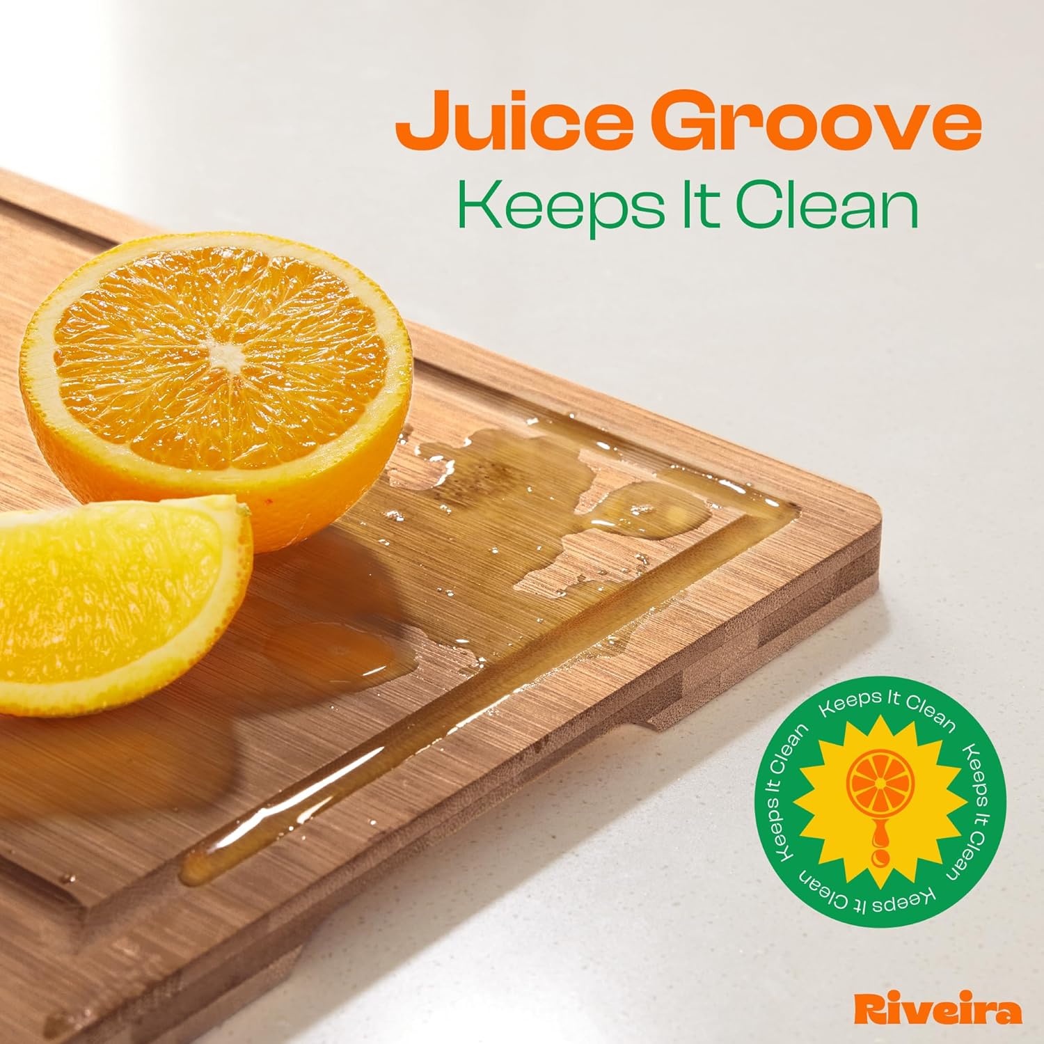 Riveira Brown Bamboo Wood Cutting Board – Gourmet Bamboo Grandeur: 24 x 18 Wooden Cutting Board – Wooden Cutting Boards For Kitchen Decorative – Innovative Juice Grooves Wooden Chopping Board