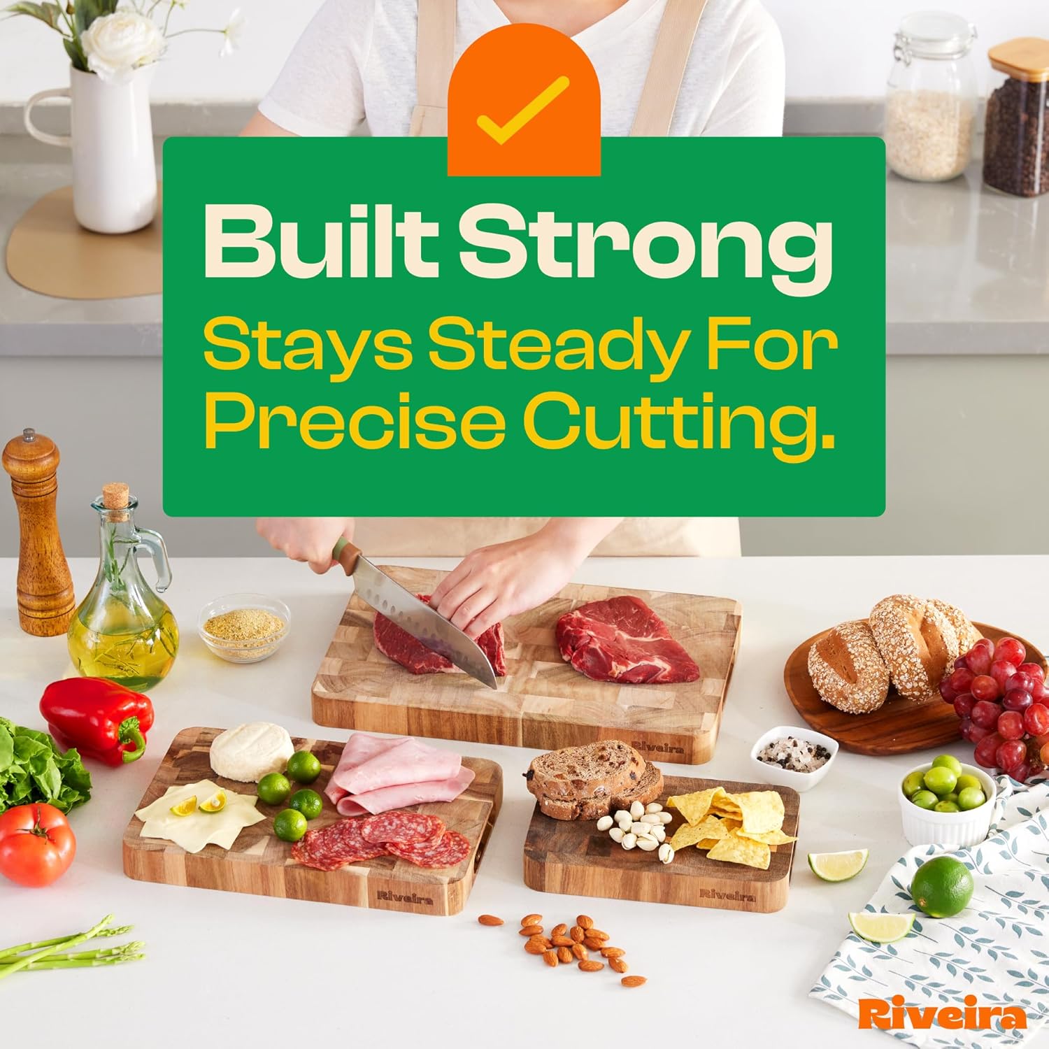 - Handle Everything with Confidence — The built-in handle holds of the acacia cutting board wood are designed for handling everything with confidence and easy maneuvering. Pre-oiled and ready for immediate bewilderment, this cutting boards wood is not just convenient for the kitchen mess but has a unique design to maintain, ensuring a performance that is both comfortable and clean for butchers block. Riviera best cutting board will be perfect in your kitchen.