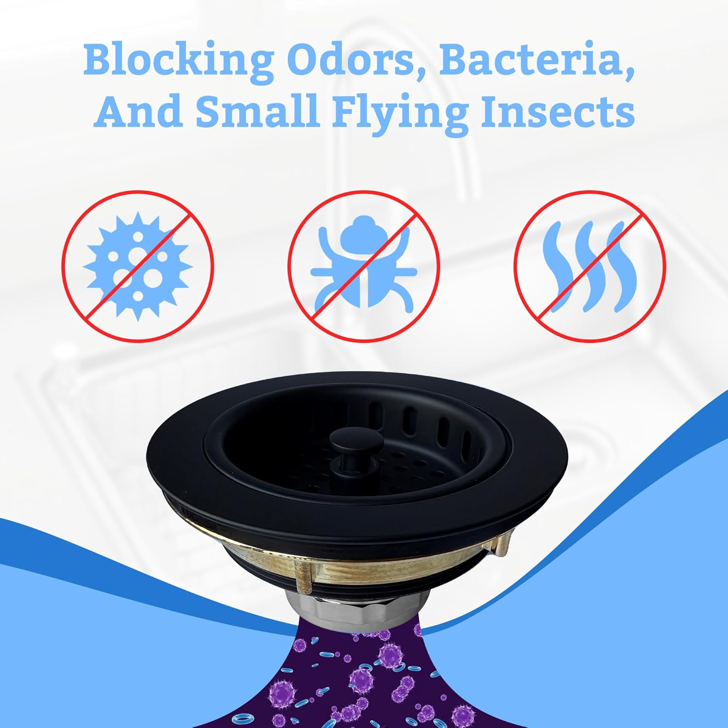 Metal World BS10101MB Post Style Sink Strainer, 3-1/2" Metal Kitchen Strainer, Cast Brass Body Basket Strainer, Strainer with Stainless Steel Basket, Matte Black Finish 1 Pack