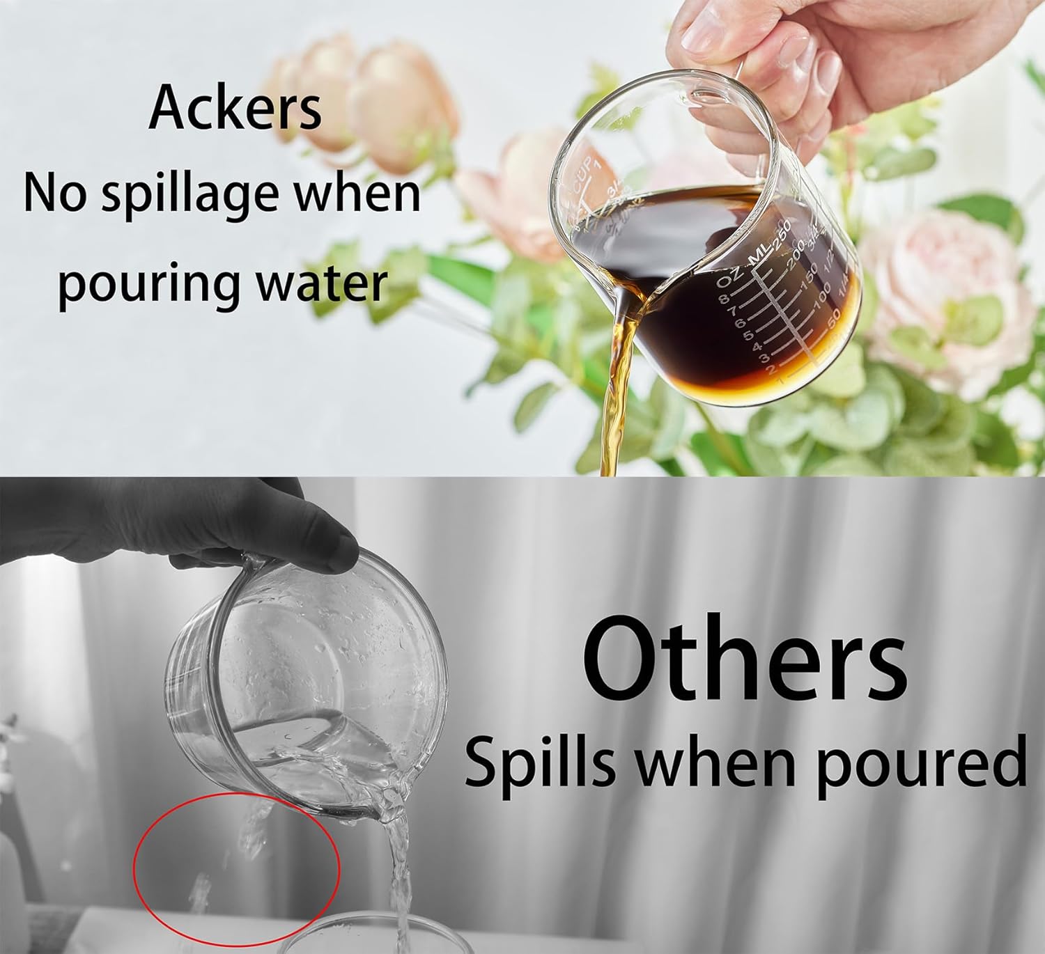 - [Comfortable and Lightweight Design] The high borosilicate glass measuring cup is lightweight, making it easy to handle and reducing the strain on your wrists. This makes it excellent for use in the kitchen, whether you're cooking, making coffee, or baking
