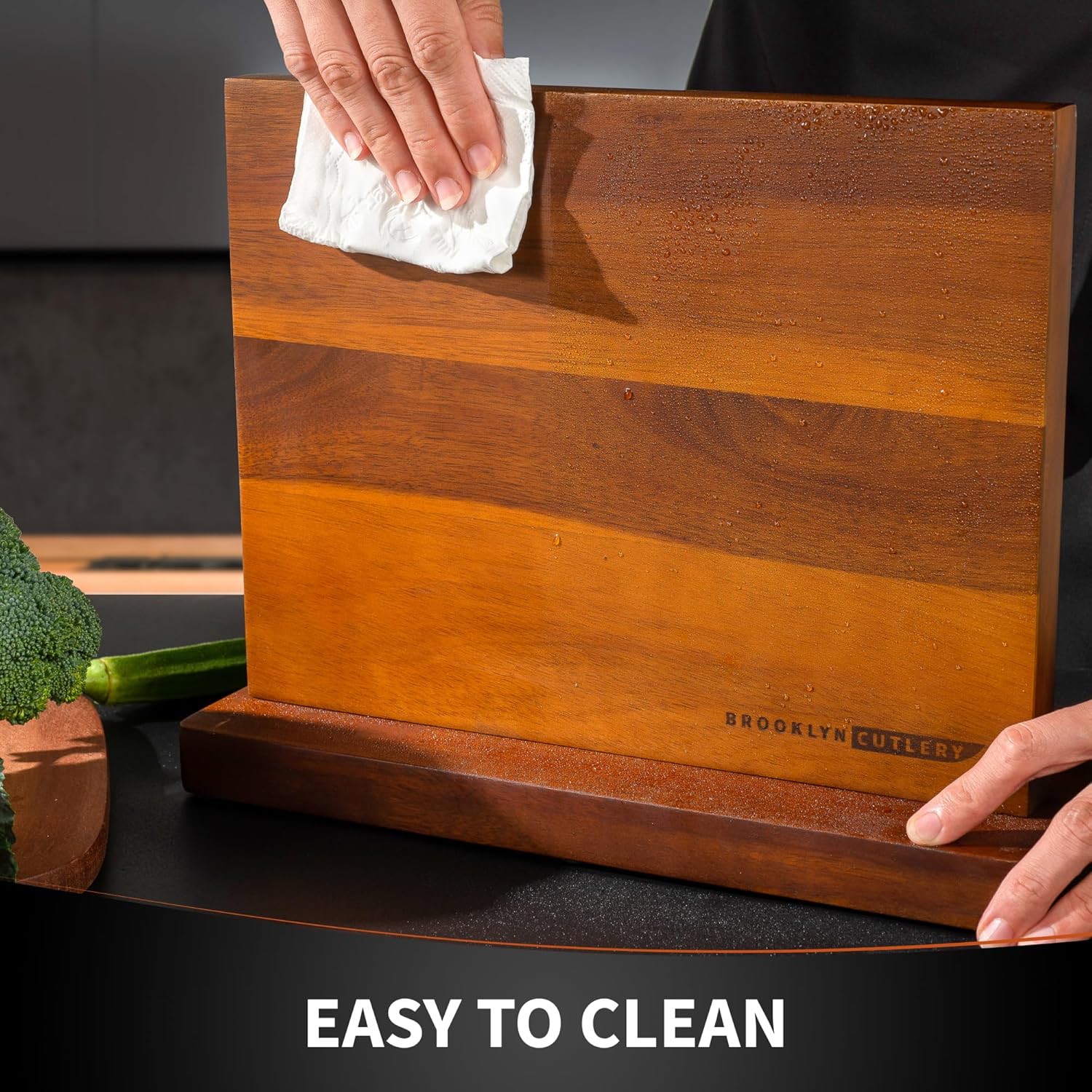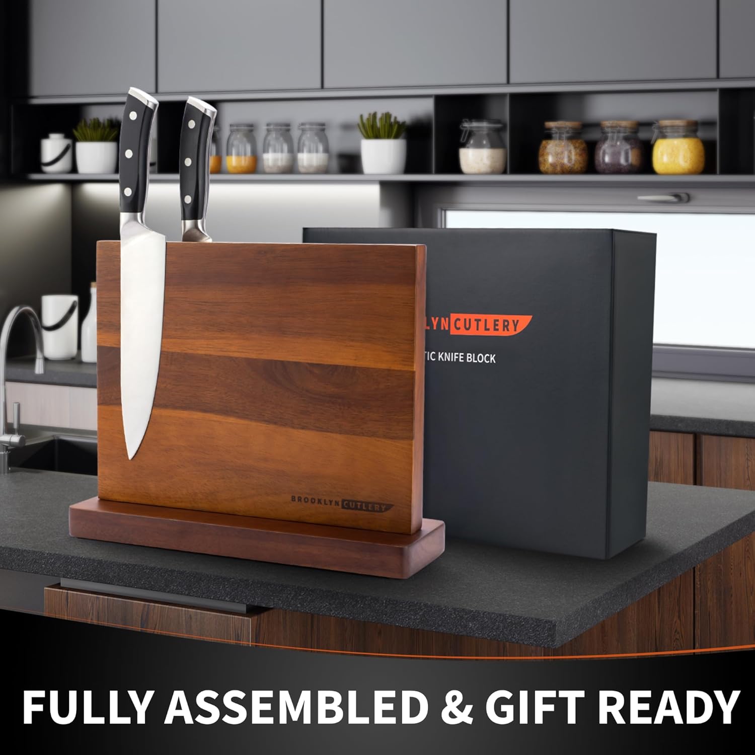 Magnetic Knife Block, Acacia Wood Magnetic Knife Holder for Kitchen Counter Universal Knife Block Without Knives (12 x 10)