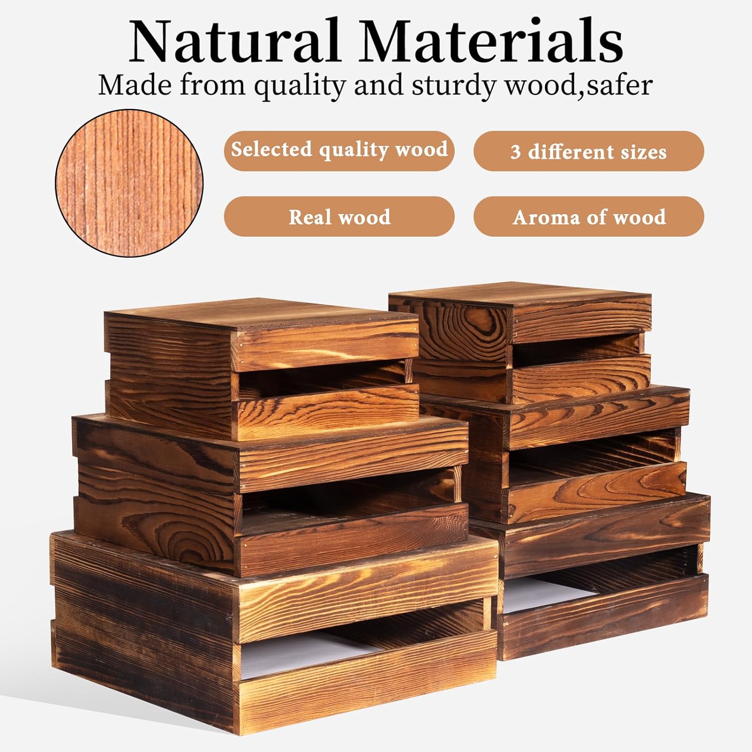 - Versatile Sizes for Layered Elegance: Our wooden stackable display boxes are carefully sized for multi-layer display, Large: 8.9x7.9x5.1 inches; Medium: 8.0x7.0x4.7 inches; Small: 7.2x6.2x4.3 inches, create stunning visual tiers and levels of display space that captivate every guest