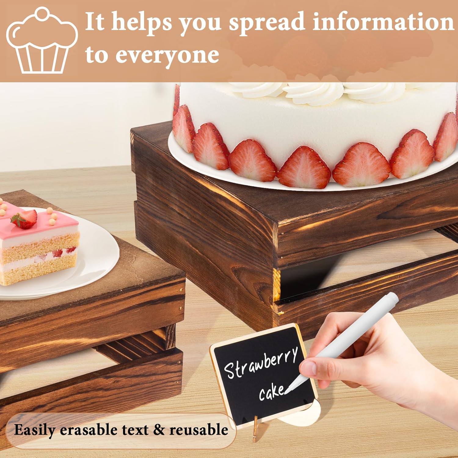 - Your Party's Sweet Companion: You will receive a set of 6 wooden cake stand risers (available in 3 sizes), 6 wooden signs and 2 pens, enough quantity and different sizes to meet the needs of different sizes of cakes, snacks and desserts for display. The wooden signs can be used to write down hints for ease of use while adding elegance to your dessert table.These wooden stackable display boxes will not take much displaying space