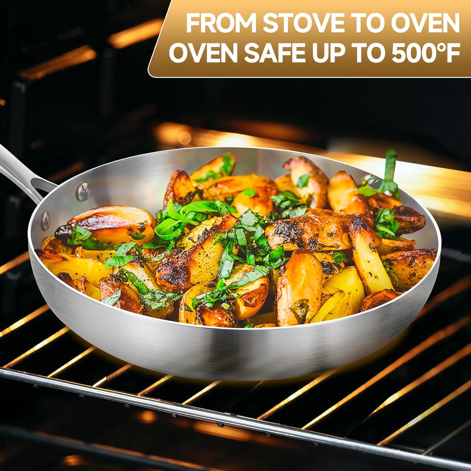 - Dishwaher and Oven Safe:The high quality tri-ply clad make the pan dishwasher-safe and oven-safe up to 500Β°F