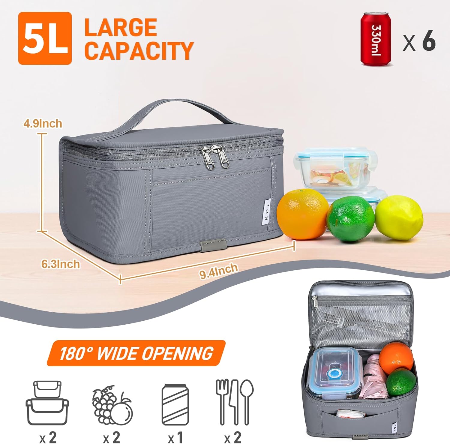 - Premium Material: NOL mini reusable lunch bag is made of the highly quailty 900D Polyester, the inner layer is PEVA material and the middle layer is specially filled with 5mm thick insulating lining, which provide great insulation to keep the food warm or fresh up to 3-4 hours.The double zippers of the thermal bag are made by NOL, very smooth and resistant.