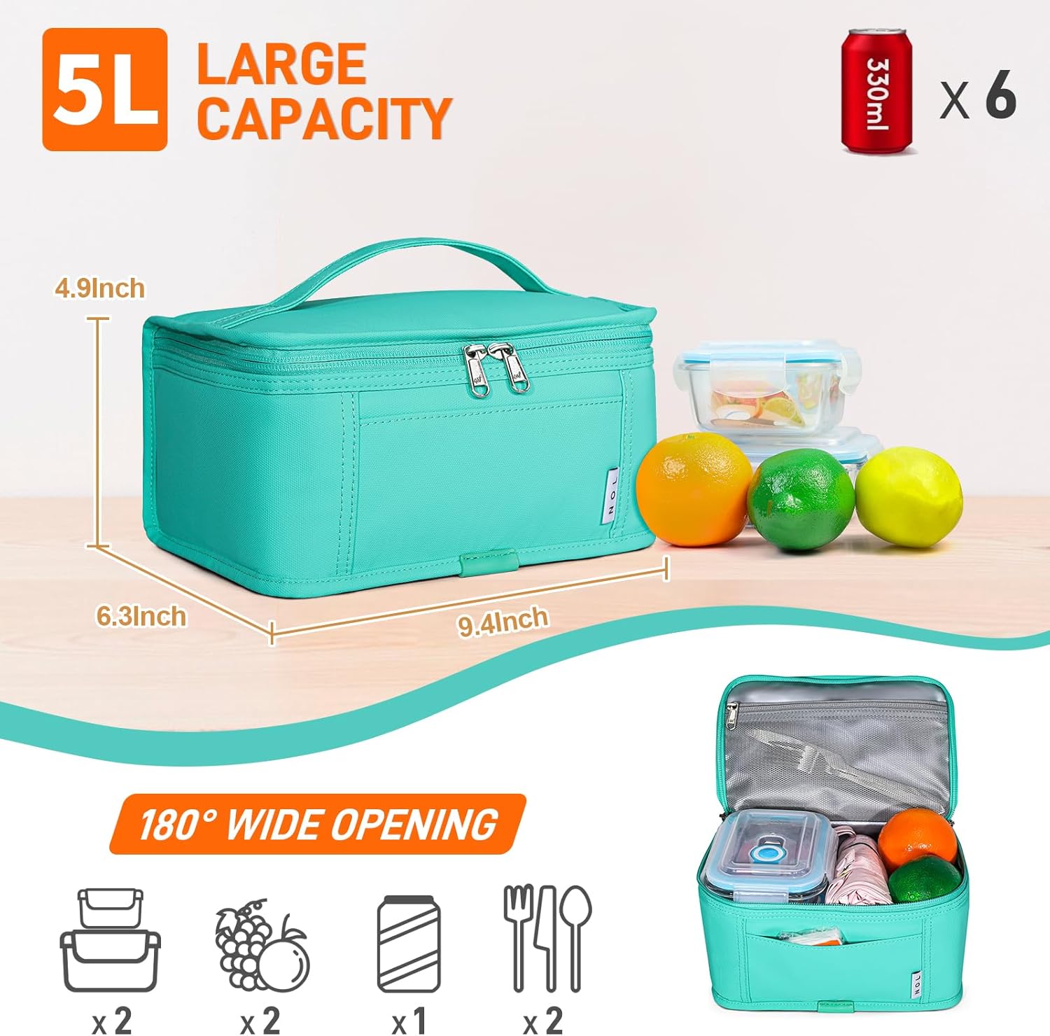 NOL Natural Organic Lifestyle Small Lunch Bag Mini Lunch Box Insulated Lunch Bag for Men/Women Leakproof Cooler Tote Bag Lightweight Nylon Waterproof Lunch Box For Work,Cyan