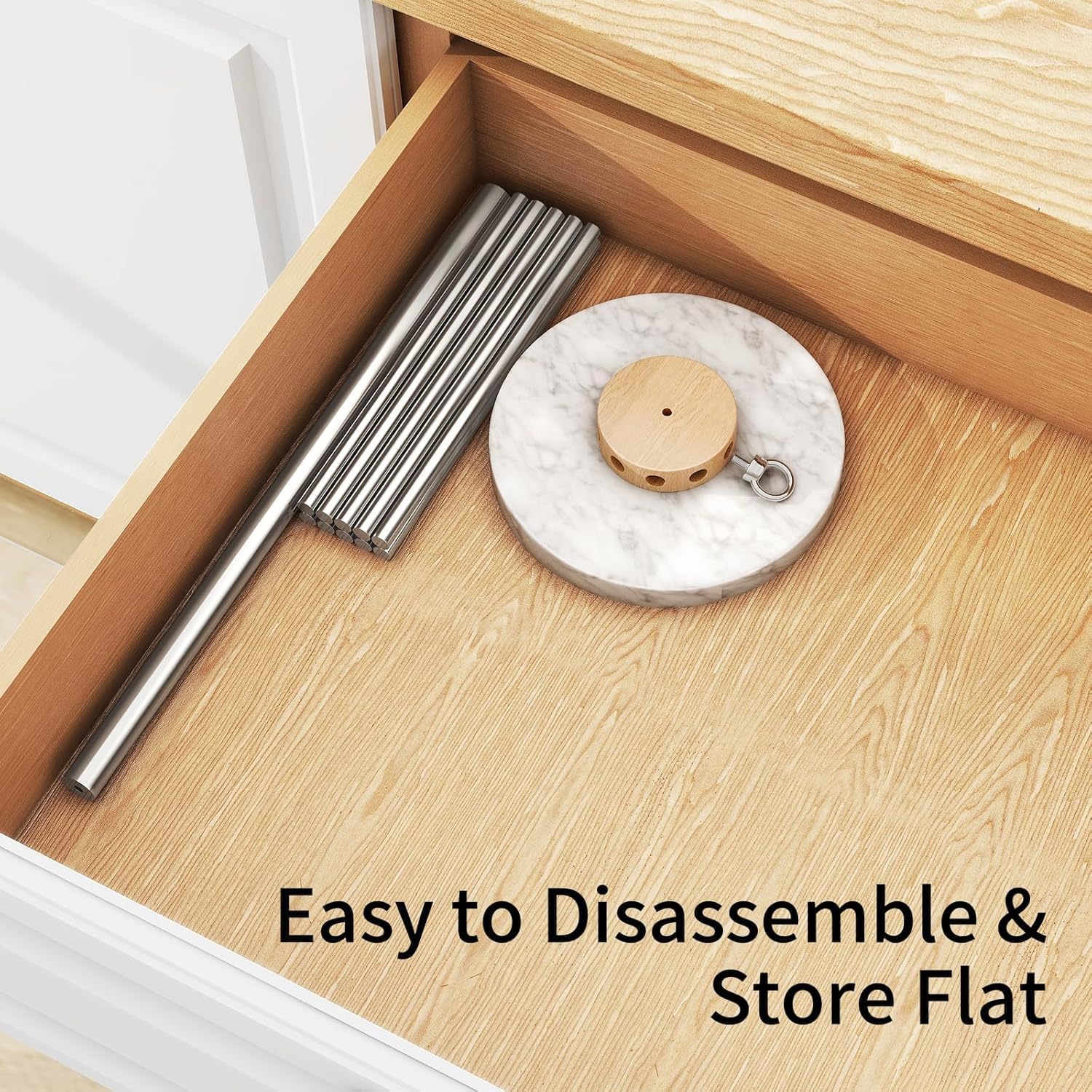 Pasta Drying Rack, 304 Stainless Steels Pasta Rack with Handle, Detachable Stand Noodles Drying Hanger for Homemade Fresh Spaghetti, Tagliatelle, Fettuccine, Marble Base