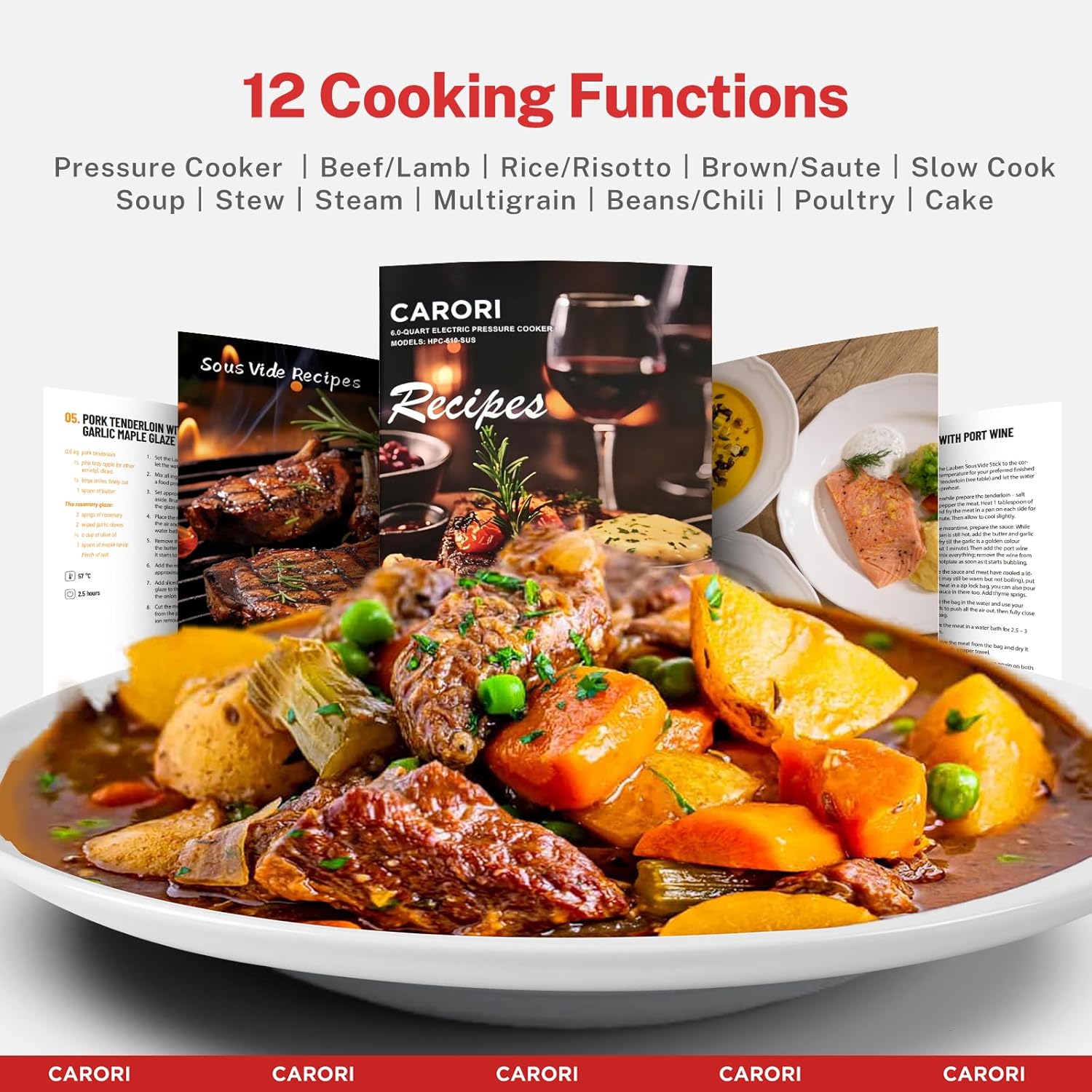 - Easy to Clean: The electric pressure cooker's fingerprint-resistant stainless steel exterior and non-stick interior pot are designed for convenience. Both the pot and lid are dishwasher-safe, making cleanup effortless.