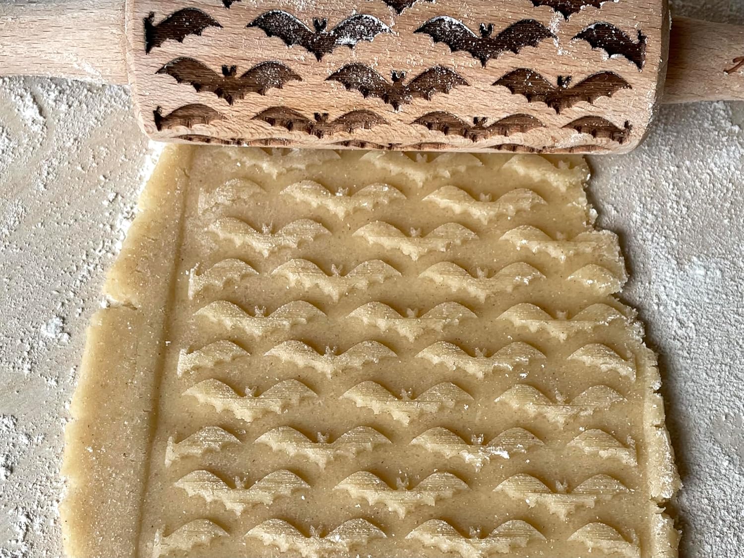 - COMFORTABLE DESIGN - This rolling pin with pattern is made with ergonomics in mind so that anyone can use its mesmerising designs! Rolling pin measures are approximately 9.5" (24 cm) from handle to handle, embossing part 4,5 inches (11 cm), diameter 2" (5 cm), made of beech wood. The finished product is food safe.