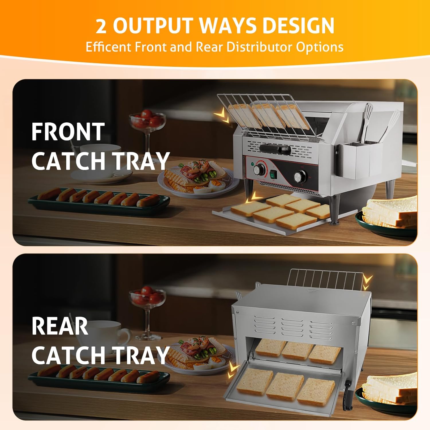- 【High Efficiency Commercial Toaster】- The commercial conveyor toaster is efficiently high-power fast baking, which can evenly toast up to 450 slices of bread per hour. Great conveyor toaster for any commercial use, restaurants or bakery Use, office, hotel, school, cafeteria, and breakfast of big family.