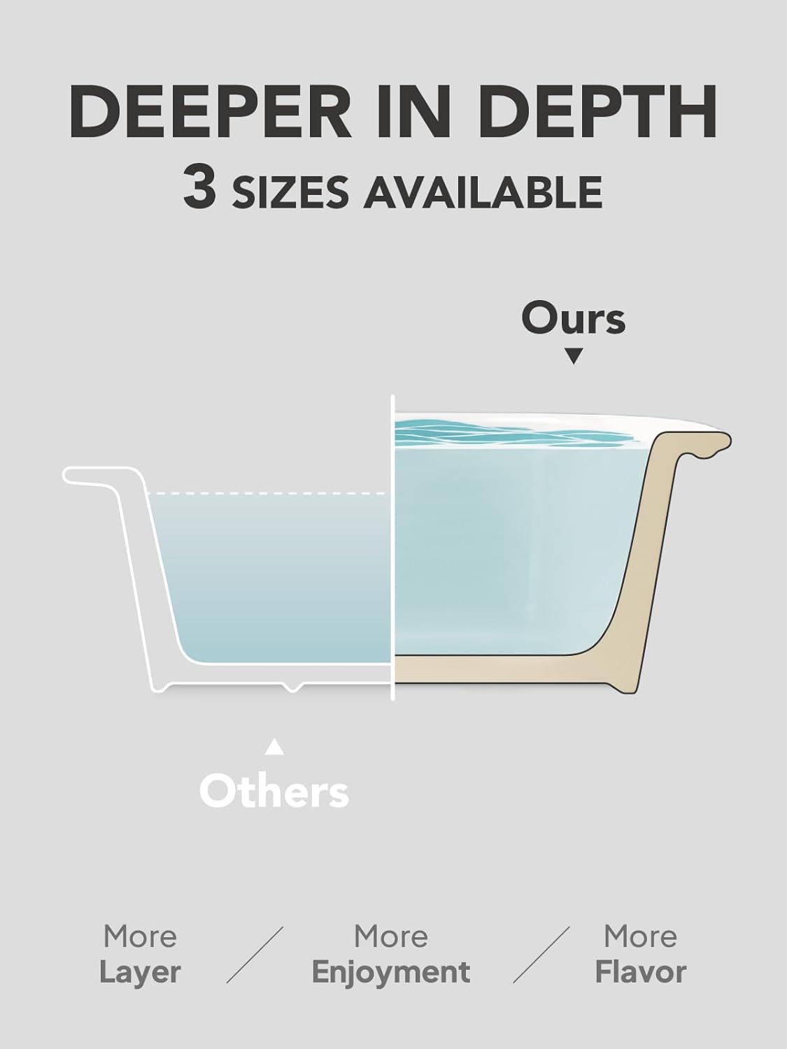 - Extra Deep for More Flavor: This 3-piece casserole dishes for oven set includes large (13.7” x 9.6” x 3.0”), medium (11.1” x 8.3” x 2.8”), and small (8.3” x 6.6” x 2.6”) pans. Each pan is deep, making them perfect for a wide variety of dishes—from layered casseroles and lasagnas to roasted meats, as well as family-sized or small-batch recipes