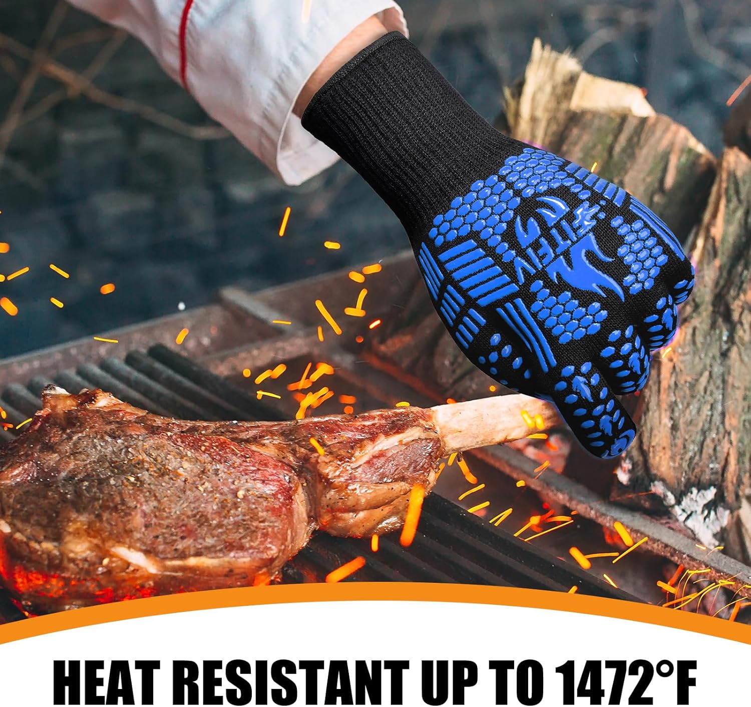 BBQ Gloves, Oven Gloves, 1472°F Extreme Heat Resistant Barbecue Gloves, Silicone Non-Slip Oven Mitts, Kitchen for Cooking, Grilling, and Baking (Blue)