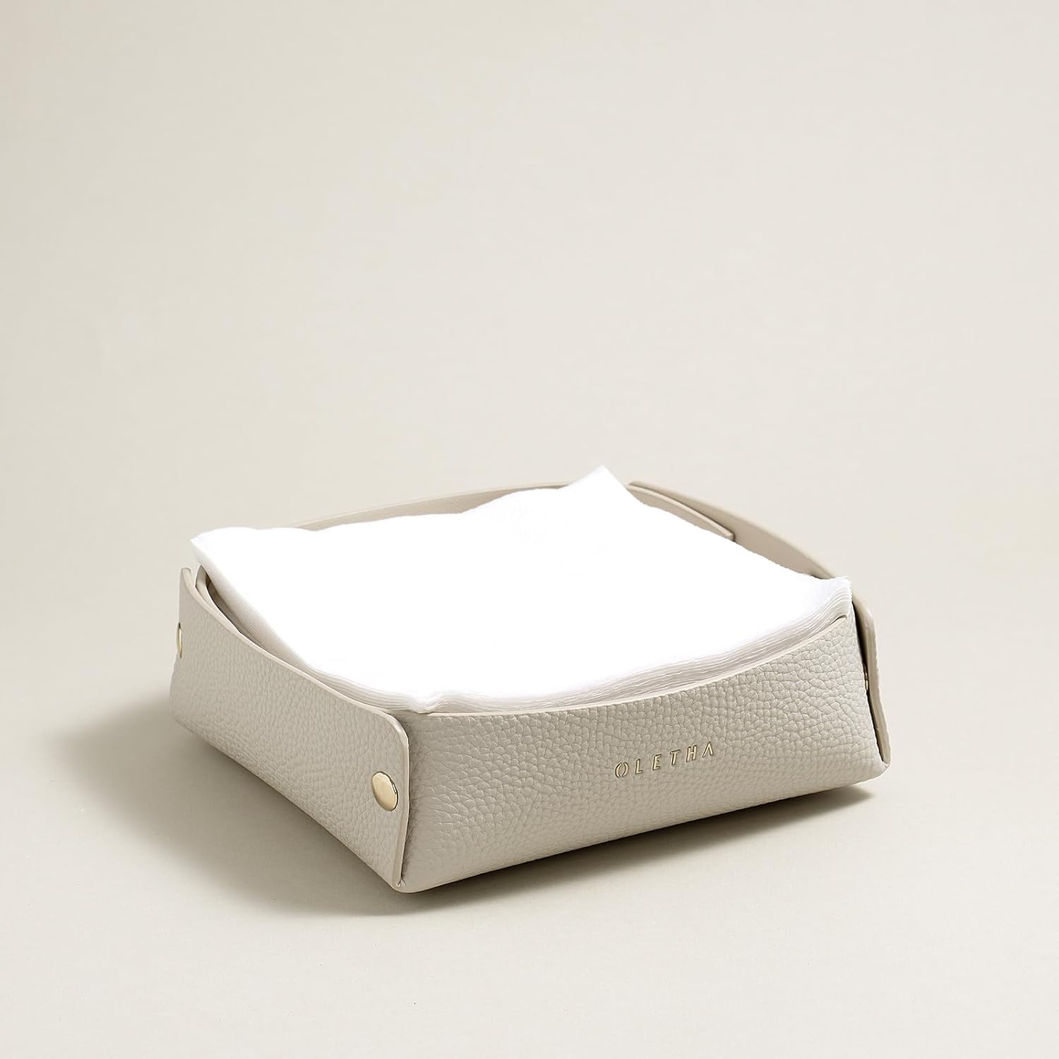 OLETHA Napkin Holder for Luncheon Napkins - Aesthetic Desk Decor for Kitchen & Dining Table - Light Taupe