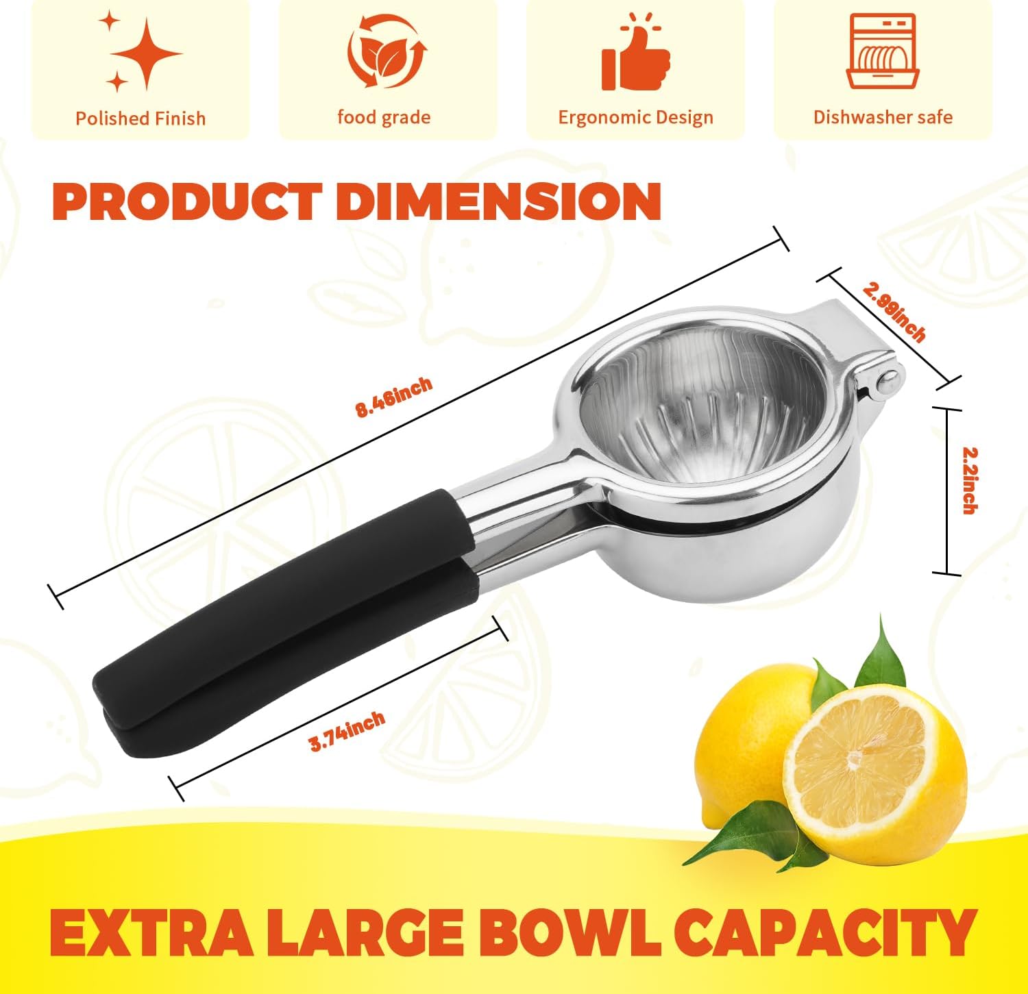 - 【Best Material】:This handheld lemon juice presser is made by 304 stainless steel materials which is durable, With silicone non-slip handle, corrosion-resistant and doesn’t react with fruits juice, never need to worry about the health problems.