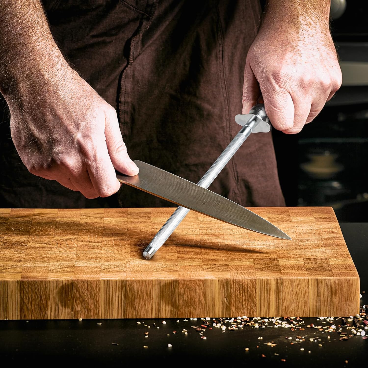 Knife Sharpener Rod, Kitchen Knives Sharpener Carbon Steel Professional Knife Sharpening Steel, Honing Rod with Hanging Holes (13 inches), Z