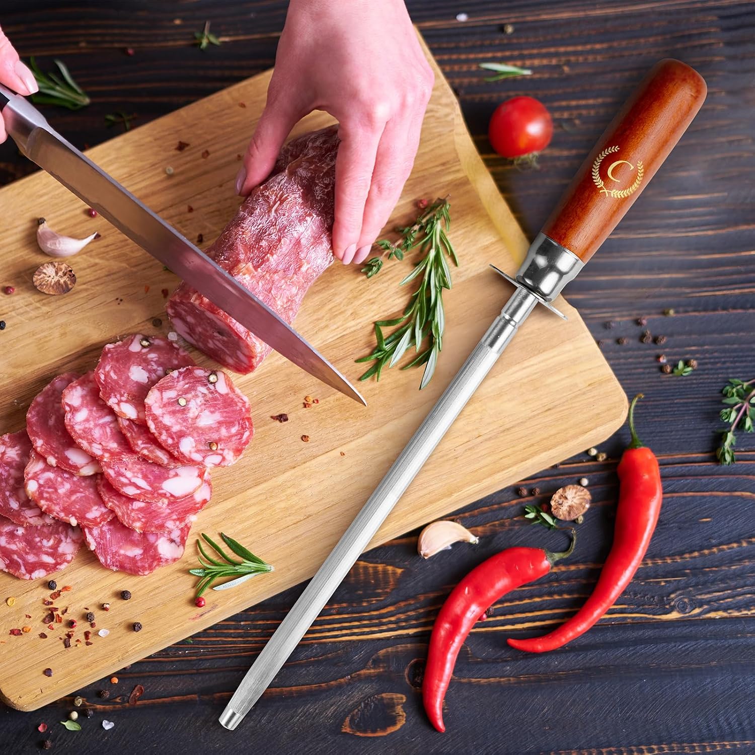 Knife Sharpener Rod, Kitchen Knives Sharpener Carbon Steel Professional Knife Sharpening Steel, Honing Rod with Hanging Holes (13 inches), C